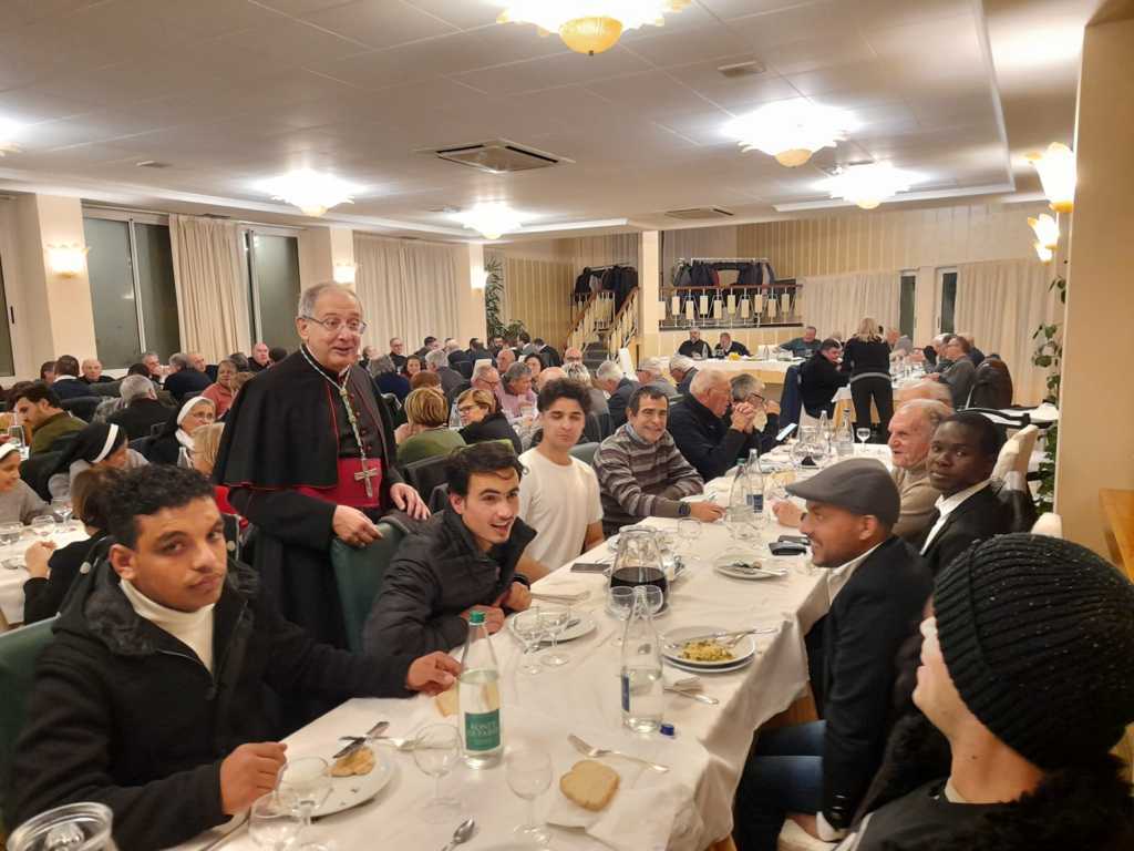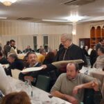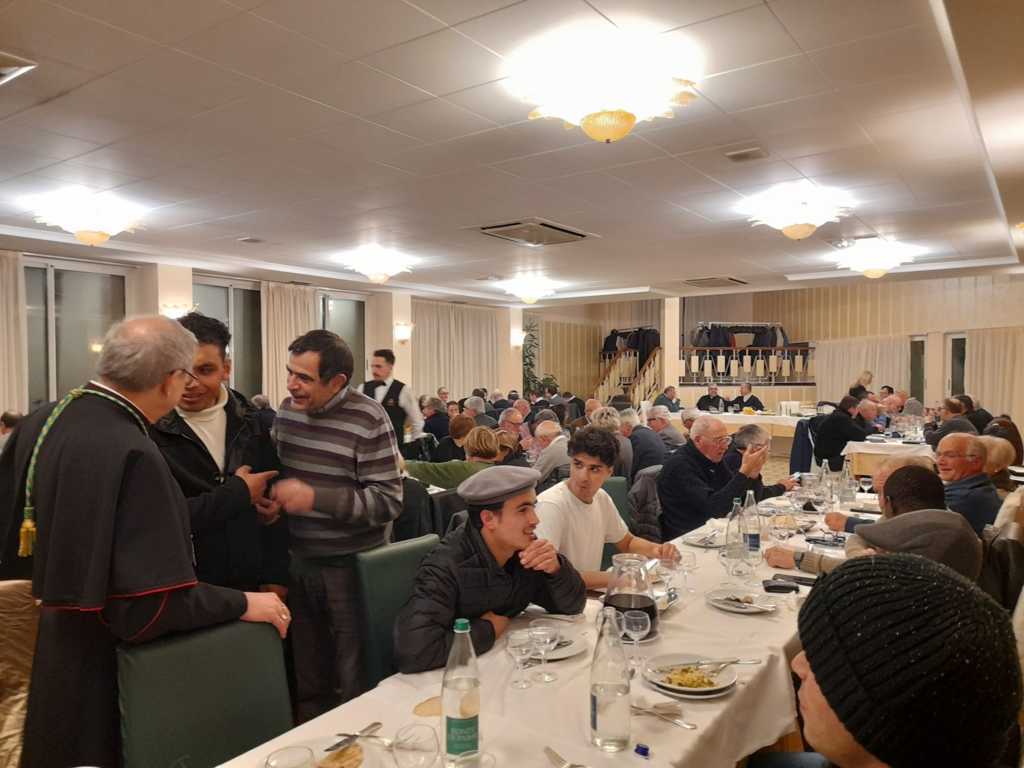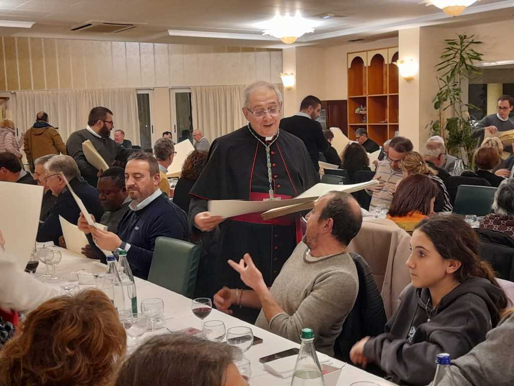Dopo il saluto del Vescovo Bresciani a tutti i convenuti e la benedizione della cena, la serata è trascorsa in armonia e allegria, tra risate, canti e buon cibo.