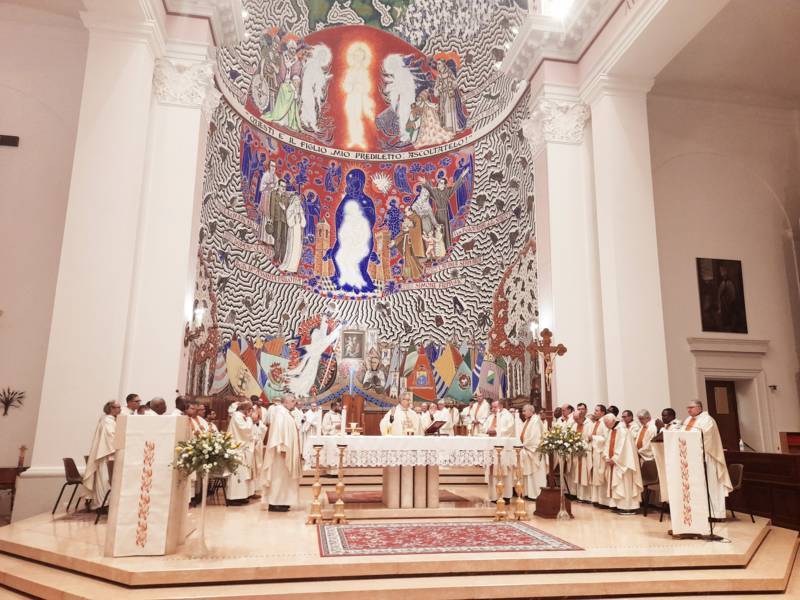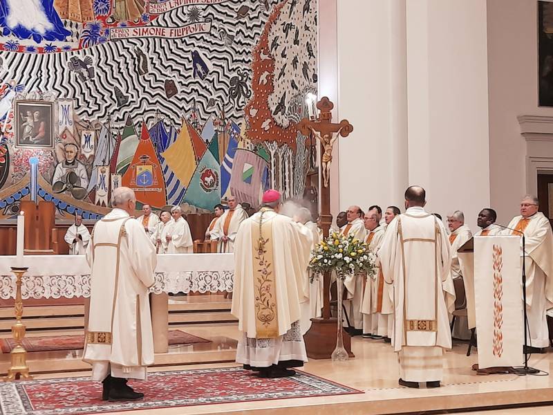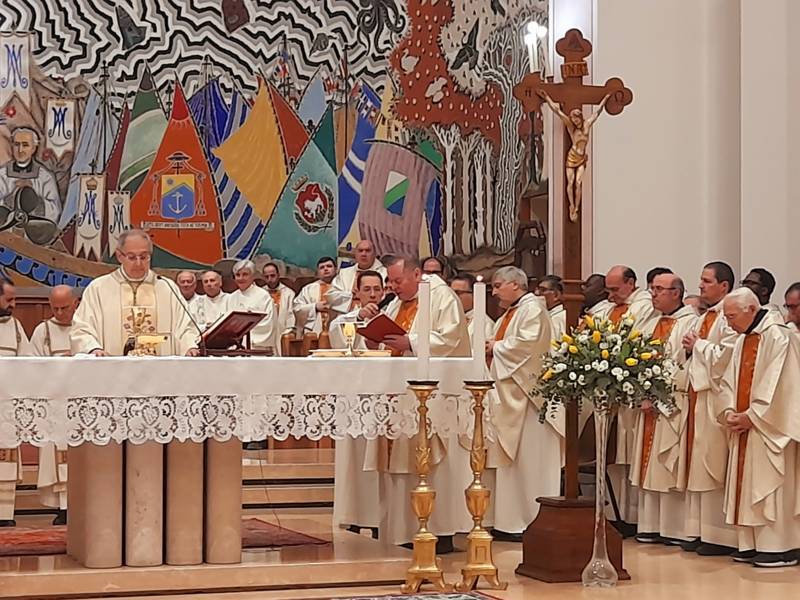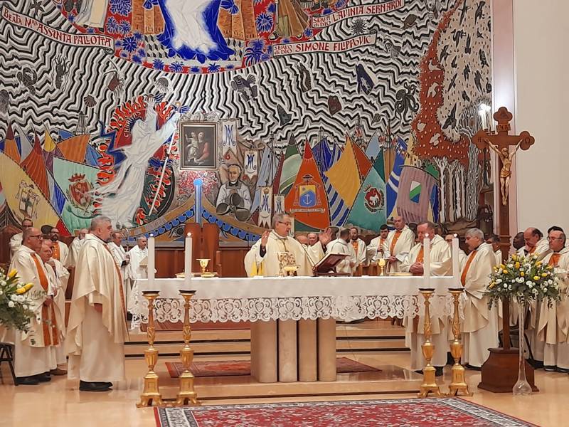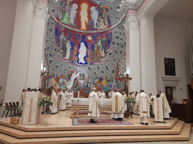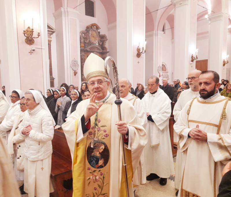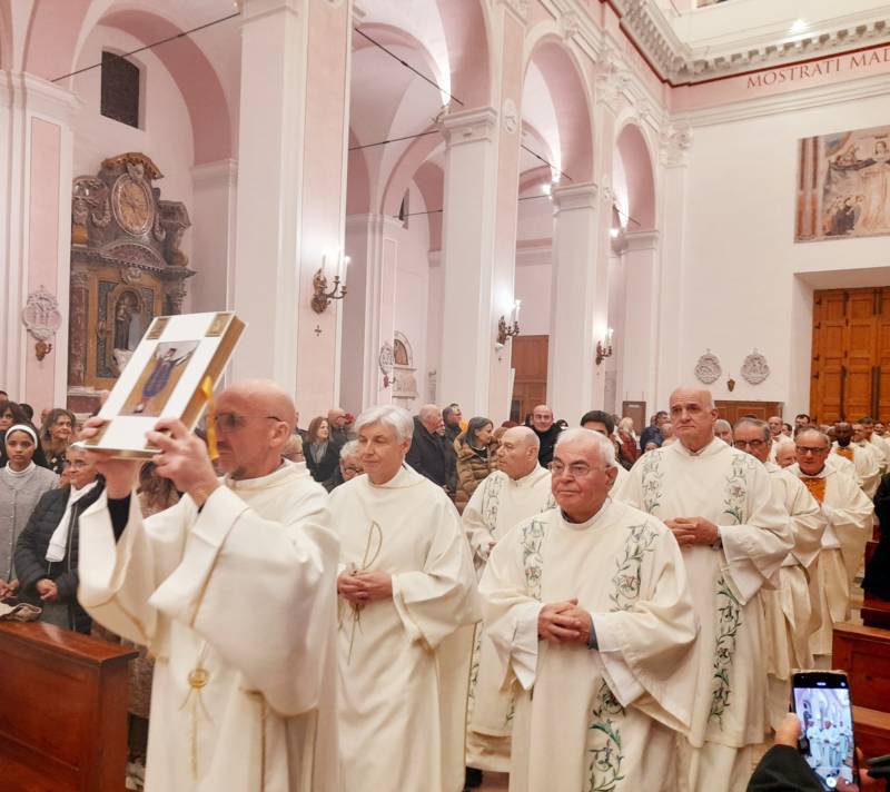 Grazie, pertanto, perché ci ha accompagnato a vivere sempre nel frammento il tutto, con pazienza, delicata discrezione e generosa accoglienza. Ha camminato con tutti noi con educazione, senza invadenza e con gentilezza ci ha indicato a tenere fisso lo sguardo sul volto del Cristo, perché vivendo con noi le tempeste della vita, che in questi ultimi dieci anni non sono mancate – come il terremoto o la pandemia –, ci ha aiutato ad arrivare a riva e a riconoscere che davanti a noi c’era tanto da abbracciare e vivere ancora, con passione ed entusiasmo.
