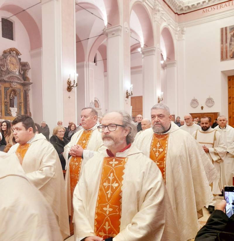 Sono queste le parole di gratitudine e riconoscenza che il Vicario Generale don Patrizio Spina ha rivolto a Mons. Carlo Bresciani, Vescovo della Diocesi di San Benedetto del Tronto – Ripatransone – Montalto, in occasione del suo decimo anniversario di ordinazione episcopale, all’inizio della celebrazione eucaristica avvenuta giovedì 11 gennaio 2023, alle ore 19:30, presso la Cattedrale Santa Maria della Marina in San Benedetto del Tronto. La Santa Messa, presieduta dal Vescovo Bresciani, è stata concelebrata da numerosi Sacerdoti della Diocesi e servita da molti Diaconi. Presenti anche i Seminaristi della Diocesi e gli aspiranti al Diaconato. Tanti i fedeli accorsi dalle varie Parrocchie del territorio, comprese alcune autorità civili e militari, che sono giunte dai vari Comuni della Diocesi per festeggiare con Mons. Bresciani questo importante anniversario.