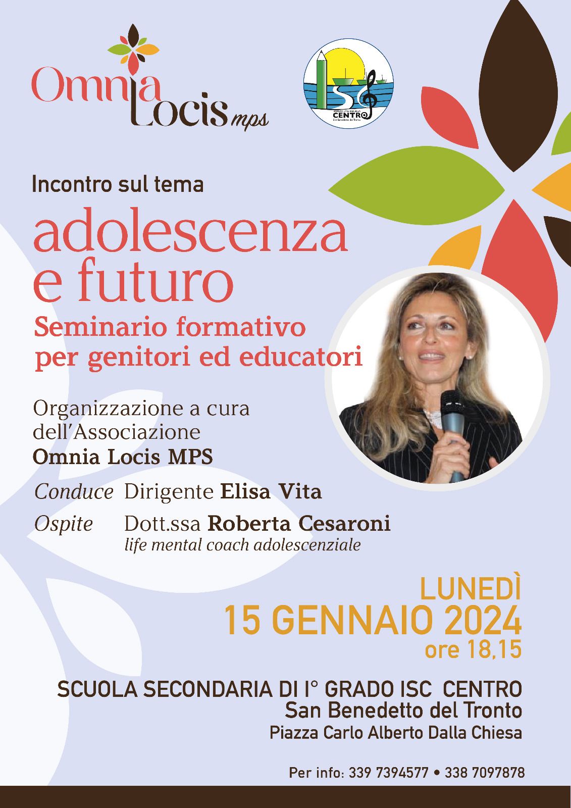 E’ l’iniziativa dell’Isc Centro di San Benedetto che per lunedì 15 gennaio ha programmato un incontro con Roberta Cesaroni, psicologa del Lavoro ed esperta nelle relazioni familiari, in collaborazione con l’associazione Omnia Locis Mps.