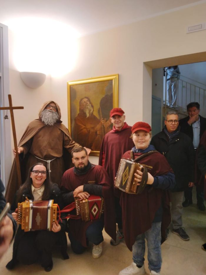 I “Cantori di sant’Antonio Abate” durante la settimana si è occupati dell’organizzazione della festa e in modo particolare il 17 gennaio, festa liturgica del santo Eremita, hanno girato in lungo e in largo il centro storico di Acquaviva Picena, visitato anche gli esercizi commerciali e l’Istituto scolastico.