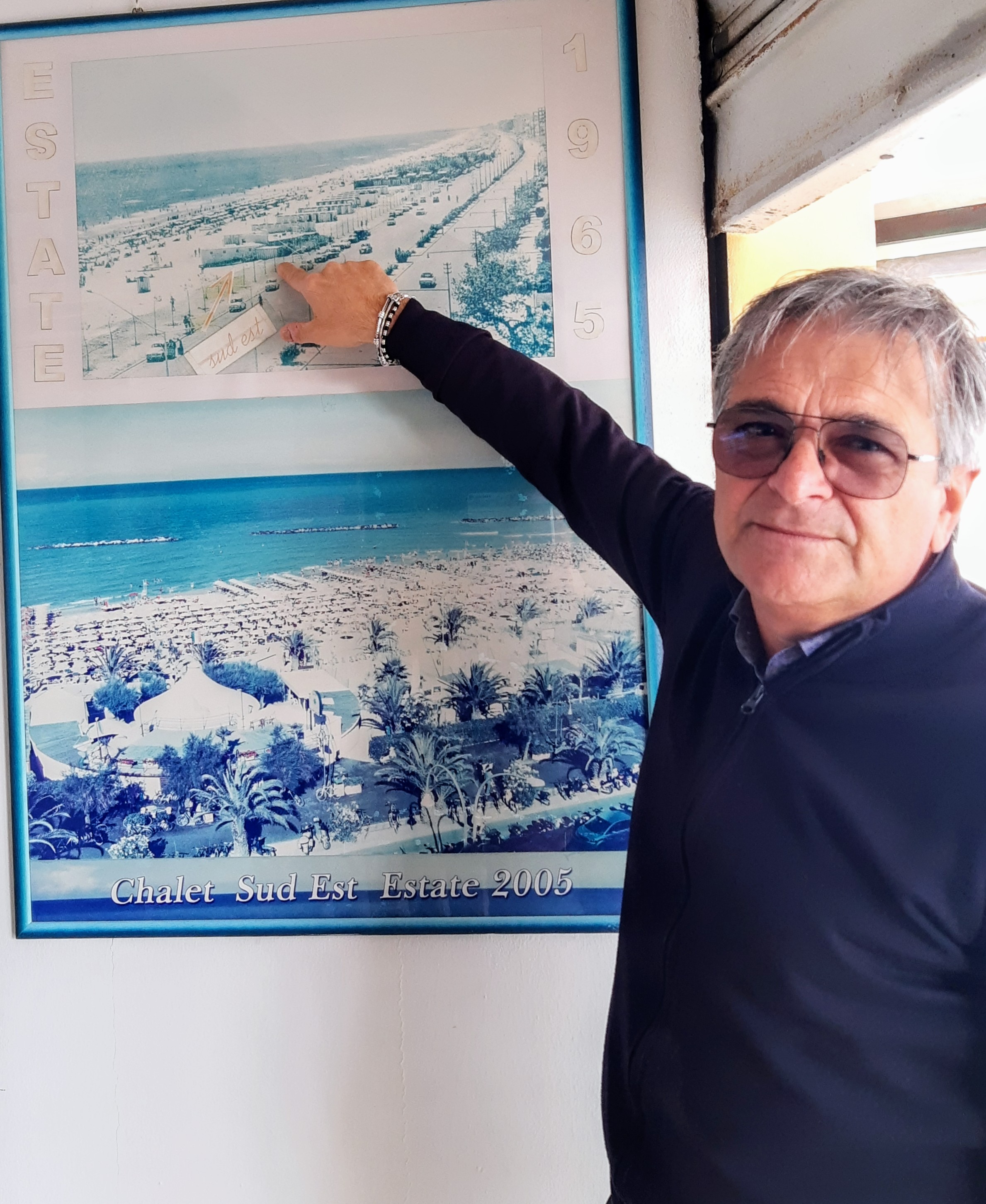 Roberto Cornacchia inizia con il ricordare suo padre, Elio Cornacchia, Cavaliere del Lavoro ed assegnatario del Gran Pavese rosso blu; personaggio noto e molto amato a San Benedetto del Tronto, scomparso purtroppo due mesi fa. Nel 1972 Elio è stato tra i fondatori della Cooperativa Conad Adriatico e ha guidato la Confesercenti, distinguendosi per il suo costante impegno verso la comunità sambenedettese. “Mio padre – racconta Roberto Cornacchia -, nel 1979, aveva un supermercato di quartiere, il Conad a Porto d’Ascoli, e avvertendo l’arrivo della grande distribuzione, ha voluto allora diversificare le attività, acquistando l’attuale Chalet Sud-Est, con l’idea di dare anche a me, neodiplomato in Ragioneria, la possibilità di costruirmi un futuro lavorativo.