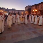 DIOCESI – È stata una serata all’insegna della preghiera, della convivialità e della fratellanza universale quella vissuta venerdì 2 febbraio da tutti i fedeli che si sono ritrovati alle ore 17:30 presso piazza Nardone in San Benedetto del Tronto per festeggiare la 28° Giornata Mondiale della Vita Consacrata, una ricorrenza che annualmente riaccende i riflettori sui Consacrati, uomini e donne, membri degli Istituti di Vita consacrata e delle Società di Vita apostolica che, come Cristo, hanno offerto totalmente la loro vita a Dio. L’appuntamento, organizzato dall’USMI (Unione Superiore Maggiori d’Italia) della Diocesi di San Benedetto del Tronto – Ripatransone – Montalto, ha registrato la partecipazione del vescovo Carlo Bresciani e di numerosi religiosi e religiose.