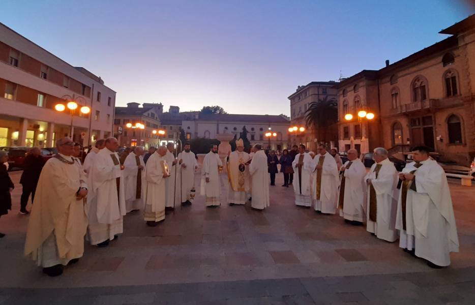 Dopo la suggestiva processione della luce verso la Cattedrale Santa Maria della Marina, alle ore 18:00, si è tenuta la solenne Concelebrazione Eucaristica, presieduta dal vescovo Bresciani ed impreziosita dal canto delle Suore Teresiane di Ripatransone.