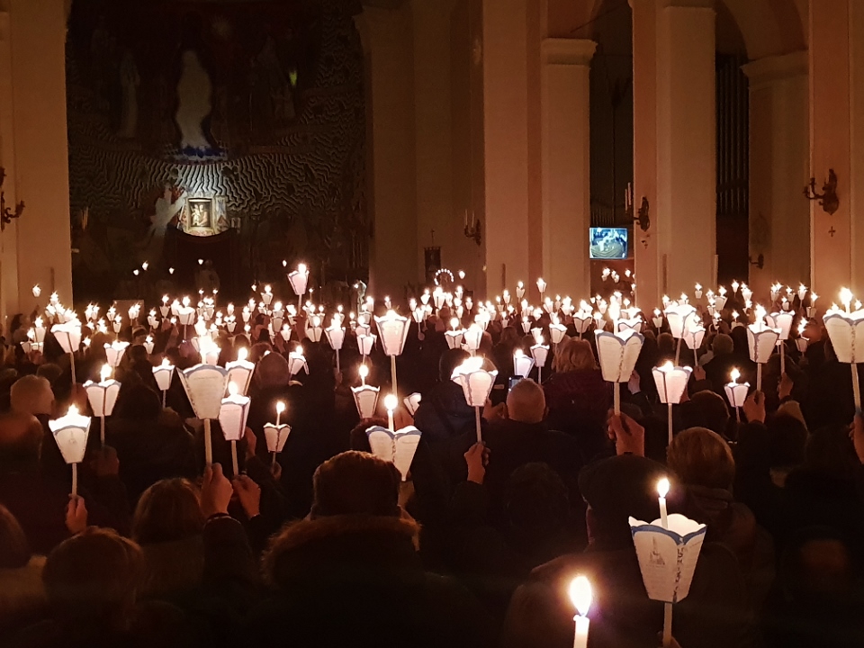 Al termine della celebrazione: Processione Aux Flambeaux all’interno della chiesa Cattedrale Madonna della Marina.