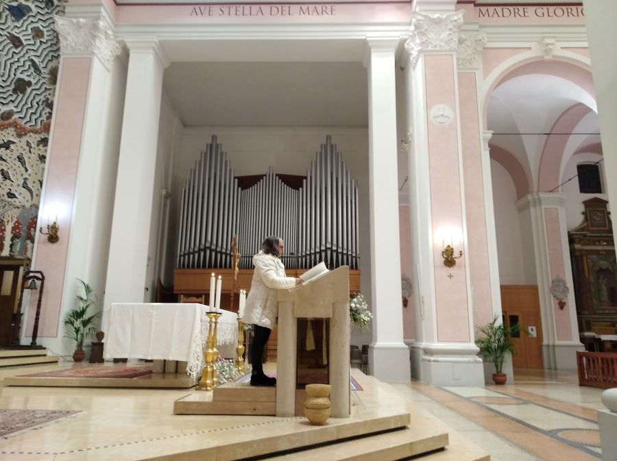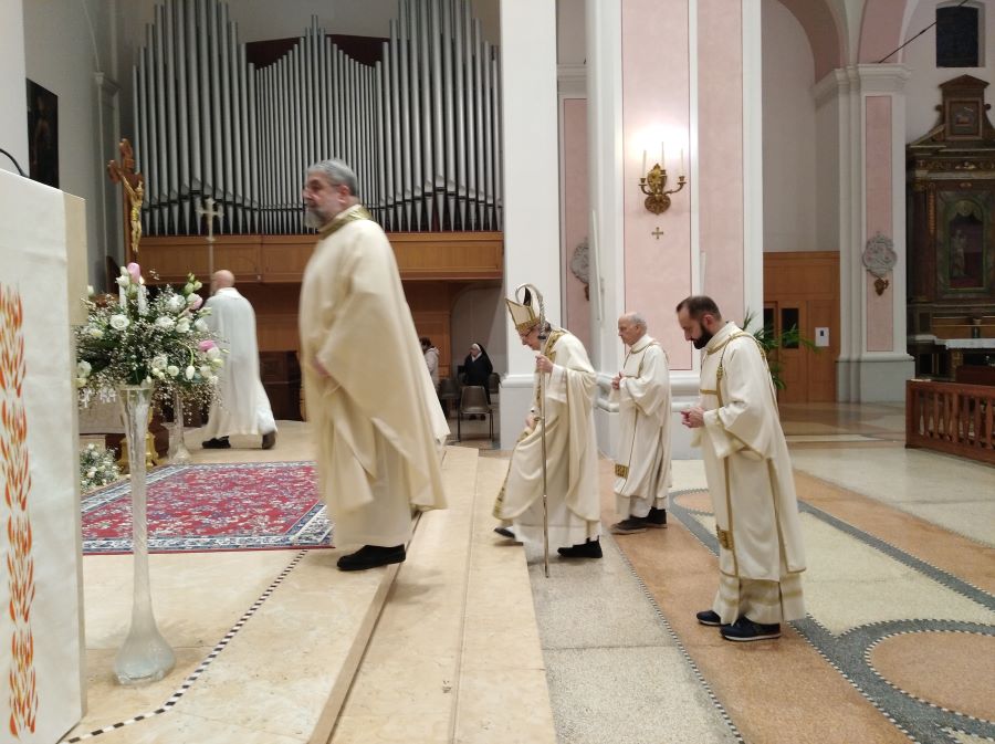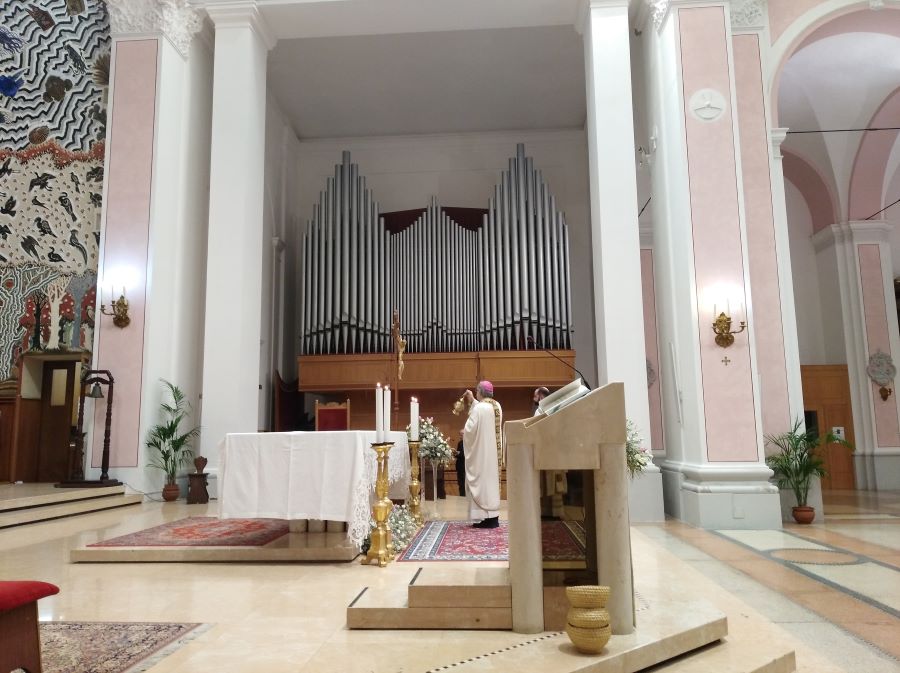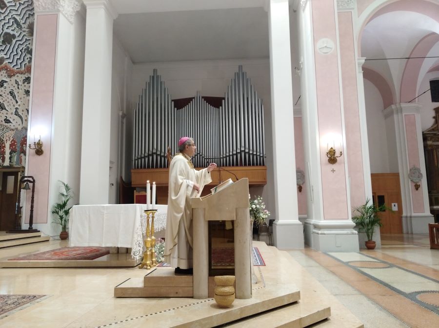 Nell’omelia il vescovo ha detto: “La chiesa Cattedrale è la chiesa Madre di tutte le chiese della Diocesi. In genere è la chiesa più grande della Diocesi, ma è soprattutto il luogo nel quale noi riconosciamo la presenza di Dio, perché è il luogo che è stato consacrato, cioè dedicato, al culto. E cosa significa culto? Credo che la Parola di Dio che abbiamo annunciato ci dia alcune indicazioni fondamentali. La Prima Lettura ci parla, ovviamente, del tempio nell’Antico Testamento, ma ha ancora il suo significato, è il luogo dove si ascolta la Parola di Dio. Neemia, che ha costruito il tempio, proclama la Parola di Dio. Come noi incontriamo Dio e Gesù? Attraverso la sua Parola. Attraverso questa Parola, che quando noi ci riuniamo per Celebrare, leggiamo sempre, perché sia “guida sui nostri passi”. Perché come noi dicevamo nel ritornello, “è spirito e vita”. Quindi il luogo ci richiama ad un incontro che ha un duplice significato, certamente un incontro con Dio, un incontro in spirito e verità, ci diceva Gesù nel Vangelo. Quindi un incontro nel quale il nostro spirito si mette davanti a Dio e si mette davanti a Dio in verità e ascolta questa Parola che viene enunciata. Questo è il primo senso dell’incontro, ma è anche l’incontro con la comunità, cioè una comunità si costruisce in spirito e verità. Perché sempre una comunità cristiana pensa ad una chiesa? Certo abbiamo bisogno di un luogo dove ritrovarsi, ma abbiamo bisogno anche di un luogo dove costruire una comunità. E noi ci costruiamo come comunità, facendoci guidare dalla Parola di Dio, non da altre prospettive. Nella Seconda Lettura san Pietro dice: “Voi siete il tempio di Dio”, il tempio spirituale. Perché se manca il tempio spirituale, anche se il tempio materiale come questa Cattedrale è importantissimo, manca tutto. Il tempio spirituale siamo noi, il tempio spirituale è quello che dà vita e quindi la Cattedrale, la chiesa, è per costruire il tempio spirituale di Dio che siamo noi. Noi ci nutriamo della Parola e del Sacramento: è vero quando si dice “Noi possiamo incontrarci anche altrove”, molta gente mi dice che prega anche a casa, è vero, ma, se rimaniamo tutti a casa a pregare da soli, non costruiamo una comunità, non si è il tempio di Dio. A casa possiamo pregare indubbiamente, possiamo leggere la Parola di Dio indubbiamente, possiamo meditare la Parola di Dio certamente, ma chiudersi individualisticamente, io e il mio Dio, non significa costruire la comunità, non significa costruire il tempio di Dio. Insieme possiamo costruire qualcosa di diverso, quel che Dio vuole è il culto nuovo di Gesù. Gesù risponde alla Samaritana, le dice che al culto vecchio di Gerusalemme si sostituisce il culto nuovo che è Gesù. Attraverso Gesù incontriamo Dio”.