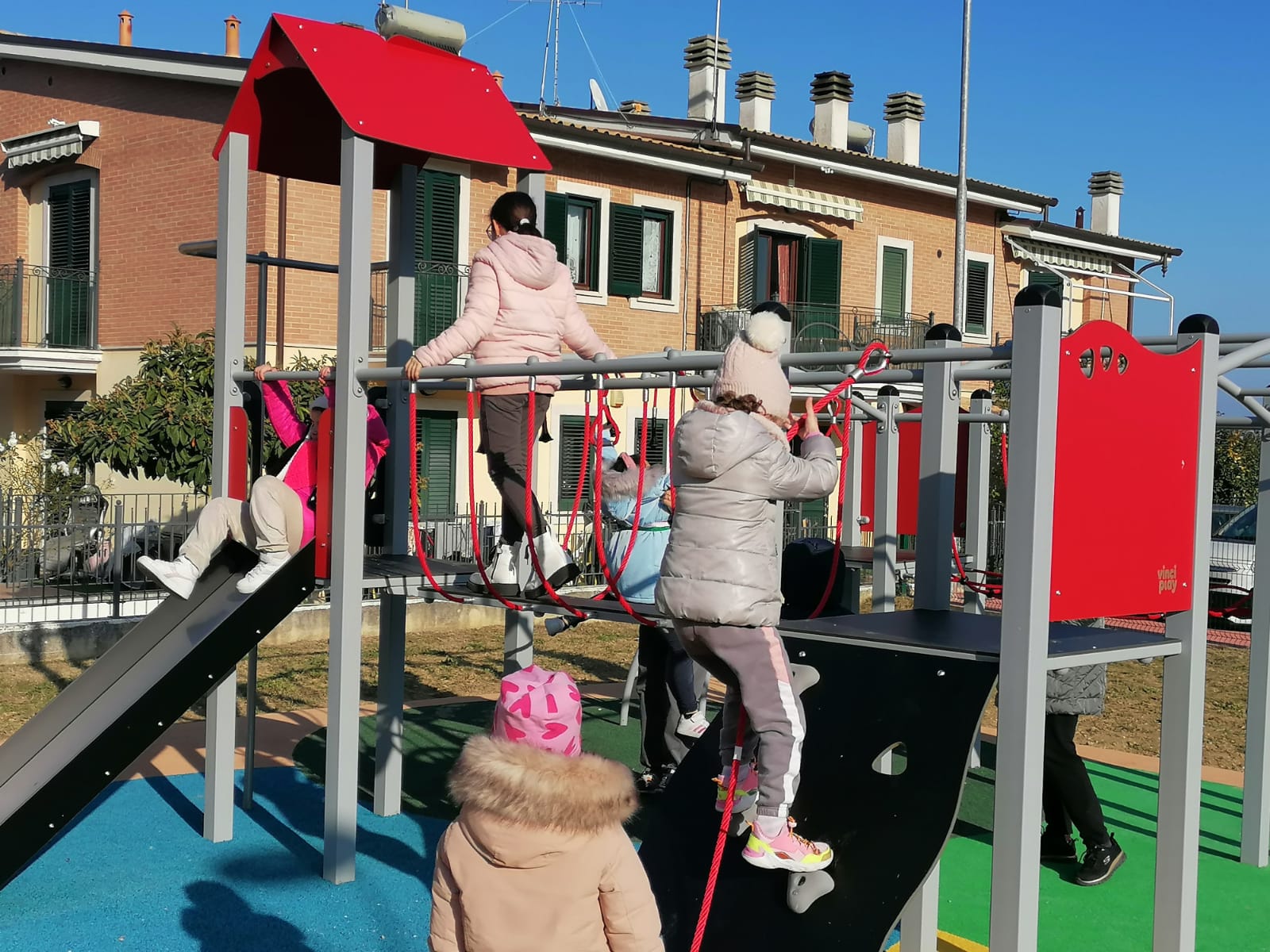 Nei due parchi Cinque Colli e della Gentilezza sono stati installati scivoli, molle, altalene, bilico, giochi combinati con scivoli e altre attività ludiche che consentono la fruizione contemporanea da parte di tanti bambini in sicurezza grazie alla realizzazione di adeguata pavimentazione antitrauma. Sono strutture ludiche certificate, scelte tenendo conto della funzionalità delle strutture offerte, della qualità e provenienza dei materiali e del loro posizionamento ottimale per una migliore fruibilità da parte dei piccoli utenti.