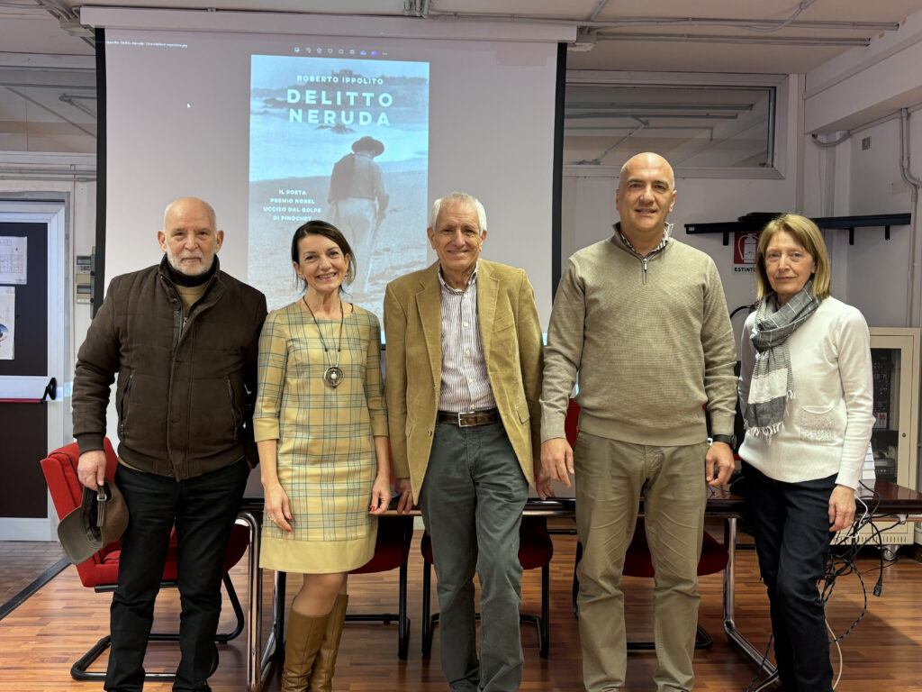 SAN BENEDETTO DEL TRONTO – Ieri mattina gli alunni delle classi 4^ A, 4^ B, 5^ A, 5^ B, 5^C del Liceo Linguistico e 5^A Relazioni Internazionali per il Marketing dell’IstitutoTecnico del settore Economico, nell’ambito del “Progetto Neruda” di cui la prof.ssa Paola Talamè è referente, in collaborazione con l’Associazione culturale sambenedettese “I luoghi della scrittura”, rappresentata, oggi, dal Presidente Mimmo Minuto e dalla prof.ssa Domenica Tranquilli, hanno incontrato Roberto Ippolito, scrittore e giornalista, autore del libro “Delitto Neruda“, pubblicato dalla Casa Editrice Chiarelettere.