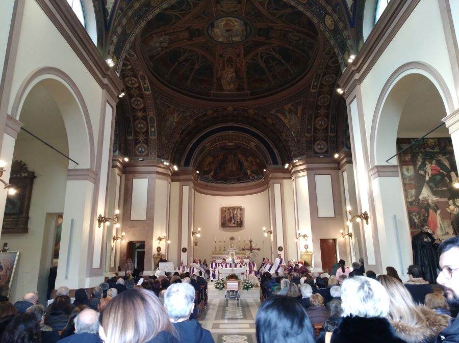 La Messa, presieduta dal vescovo della Diocesi di San Benedetto del Tronto – Ripatransone – Montalto, Sua Eccellenza Mons. Carlo Bresciani, è stata concelebrata da molti sacerdoti della Diocesi. Nell’omelia, in ricordo della signora Lida, il vescovo Carlo ha detto: “Quello che stiamo facendo è un atto di un grande significato umano. Umano perché partecipiamo non solo al dolore e alla sofferenza dei familiari che salutano per l’ultima volta un loro caro, ma anche perché riconosciamo che c’è un legame che unisce un po’ tutti. E quindi partecipiamo al dolore, ma anche a questo saluto. È un atto di profonda fede, perché quello che stiamo facendo è riconoscere che la nostra vita non è nelle nostre mani: per quanto noi facciamo, siamo chiamati a consegnare la nostra vita a chi ce l’ha donata. Essa, infatti, non viene soltanto da noi e quindi è un atto di fede perché riconosciamo che all’origine e al termine della nostra vita c’è quel mistero che noi chiamiamo Dio. E lo facciamo quindi, con grande umiltà, ma anche con la consapevolezza che la nostra vita non finisce su questa Terra. Il Vangelo che la Liturgia di oggi ci presenta in questo cammino quaresimale ci ricorda che c’è un ultimo atto della vita che mette in luce le cose buone, le verità che abbiamo cercato di vivere. E mi pare che la Parola di Dio di oggi, sia quella del Libro del Levitico sia quella del brano del Vangelo, dica quello che mamma Lida ha cercato di vivere in tutta la sua vita. Ella è stata certamente una donna di fede, cioè una donna che ha creduto a questa Parola e che, su questa Parola, ha impostato tutta la sua vita e ha cercato con le forze umane che possedeva di mettere in pratica questa Parola. Il cristiano, infatti, è colui che cerca di mettere in pratica questa Parola. Non è un semplice ascoltare, ma anche imitare. Questa, come ci dice il Levitico, è la vera strada della santità. La strada della santità non è fatta di parole, bensì di fatti, che danno verità alle parole. E mamma Lida, davvero, anche con molta concretezza, per quanto ho potuto conoscerla, ci teneva ad essere presente e dare il suo contributo alla crescita della comunità, attraverso quei servizi di cuoca che svolgeva. Diceva: “Io ci tengo ad andare ai campeggi della parrocchia”. E l’ha fatto, non una volta sola, ma tantissime volte. E lo faceva anche negli ultimi anni, quando la vita non era nel momento più florido, come è normale per un anziano. Per cui, ha tradotto la sua fede in atti molto concreti. Semplici? Sì, perché la vita è fatta anche di atti semplici, ma di grande significato. E l’ha vissuto fino in fondo. Se non sbaglio, anche nell’ultimo anno è andata: mi ricordo che ha voluto partecipare al campeggio estivo per assistere i ragazzi, per fare del bene ai ragazzi. Dico questo non tanto per una esaltazione del defunto, perché, se lo merita, il Signore ci penserà di sicuro, ma quanto perché, di fronte alla morte, dobbiamo sapere cogliere quei messaggi positivi che ci vengono dalla vita di chi ci lascia. E in questo senso i messaggi positivi di Lida sono che davvero ha creduto nella concretezza della vita. Per questo non possiamo che essere grati al Signore. Don Giuseppe lo è, grato al Signore, per il dono della mamma, ma anche noi come comunità siamo grati al Signore. Dobbiamo riconoscere il bene che da tante persone riceviamo e la preghiera è un modo per dire grazie, attraverso il Signore, al bene che abbiamo ricevuto. E lo facciamo così, anche questa mattina, dando l’ultimo saluto a Lida e affidando nelle mani di Dio tutta la sua vita, perché il compimento della nostra vita non l’abbiamo su questa Terra: noi facciamo tante cose, tante cose belle, tante cose positive, qualche volta purtroppo per la nostra debolezza anche quelle un po’ meno positive, ma in ogni maniera il compimento della nostra vita non è su questa Terra. Il compimento è in quell’ultimo atto di cui ci parla il Vangelo ed è compimento soltanto in Dio. Credo di poter dire che mamma Lida a questo compimento in Dio ha creduto e per questo si è donata. Quindi non solo ha fatto del bene per sé, ma ha fatto del bene agli altri. Non si è limitata a dire: ‘Non tocca a me, tanto ci sono gli altri che possono fare…’. No. Ha fatto l’inverso: ‘Io faccio quello che posso’. Non ha rimandato agli altri, non ha detto: ‘Tocca agli altri’, bensì ‘Tocca anche a me’. Questo è un insegnamento estremamente importante che possiamo e dobbiamo cogliere: ‘Tocca anche a me’, perché è così che costruiamo un modo migliore per la nostra vita e un modo migliore di essere insieme, di essere Chiesa, di essere figli di Dio. Mi piace molto citare don Primo Mazzolari, che diceva, riguardo le opere di cui ci parla oggi il Vangelo: ‘Sono la moneta per entrare in Paradiso’, non le opere in sé stesse, ma le opere fatte con amore. È una specie di passaporto per il Paradiso, perché Lida non si è limitata semplicemente a fare, ma l’ha fatto con amore, lasciandosi ispirare, lei che era membro del Rinnovamento nello Spirito Santo, proprio da quello Spirito che è Amore. Ed è Amore che si spende ed è Amore che si dona. Carissimi, è questa via che il Vangelo ci indica, che merita di essere percorsa, da ciascuno di noi. Ed è l’unica via che alla fine costruisce davvero qualcosa di buono, per noi e per gli altri. È la via che ci rende simili a Dio e quindi è la via della santità. Facciamocene tesoro e cerchiamo anche noi di percorrerla”.