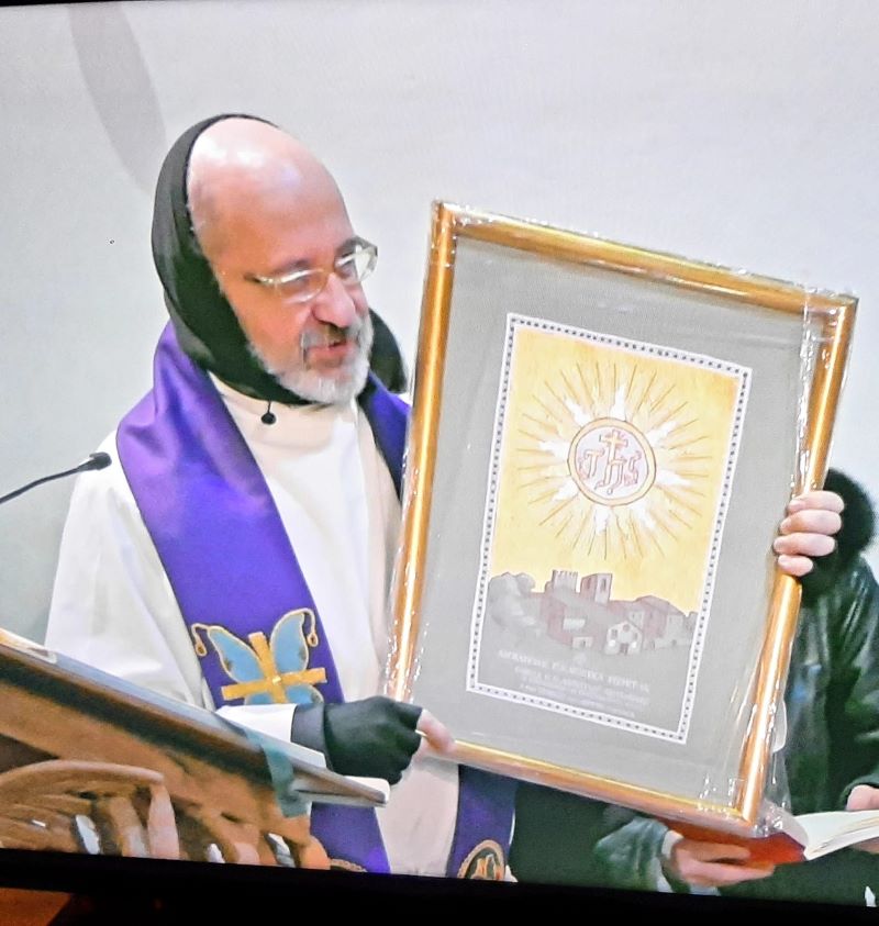 Don Giorgio Carini, assistente ecclesiale dell’Adorazione Eucaristica Perpetua, al termine della Celebrazione ha ringraziato don Patrizio Spina: “Gli adoratori portano questa grazia nelle loro realtà. Aggiungo, nel ringraziarti per la tua presenza, alcune parole di un libro che ti regaliamo, scritto da un monaco benedettino che, riconosciuto dal suo vescovo, ha avuto dei colloqui profondi con Gesù. Gesù gli dice: ‘Le cappelle dell’Adorazione non sono meri rifugi per devoti, essi sono irradiante centro pulsante di un’intensa, divina attività che va oltre le mura dei luoghi dove io sono adorato, per penetrare case, scuole, ospedali, per raggiungere anche quei luoghi bui e freddi in cui le anime sono schiave di Satana. Per penetrare nei cuori, guarire gli infermi e riportare a casa quanti hanno vagato lontano da me’. Grati al Signore per questo dono, chiediamo la sua benedizione attraverso la tua persona, che rappresenta il nostro vescovo e la nostra Diocesi. Grazie don Patrizio, noi ti accompagniamo sempre con le preghiere e ti lasciamo un disegno che ricorda questo luogo”.