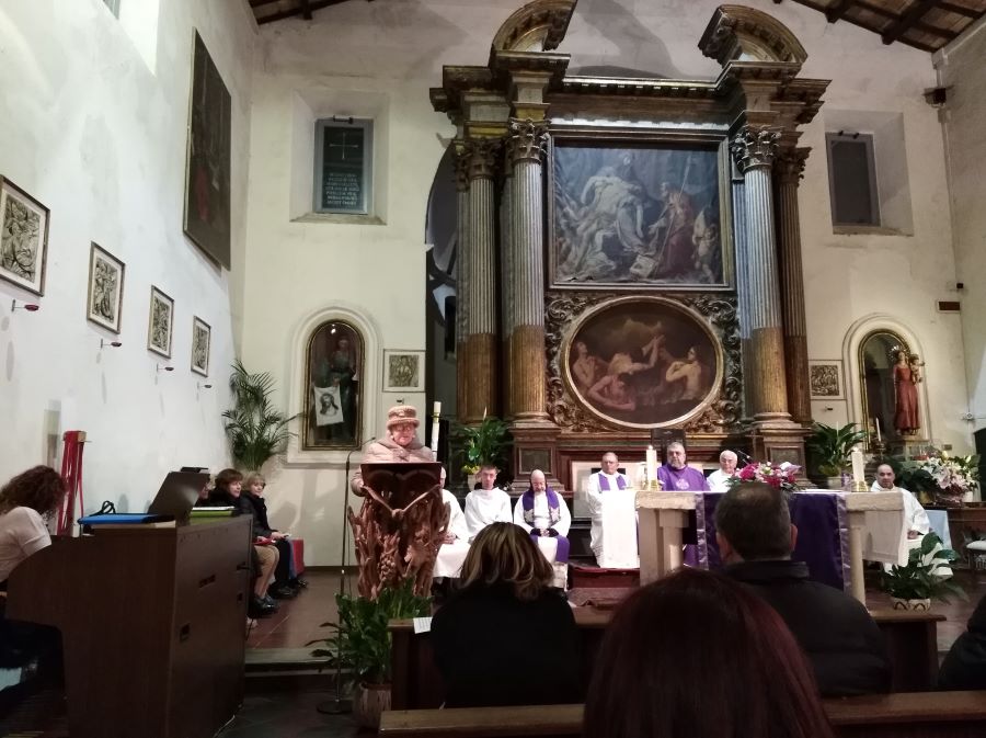 “Di fronte alla Scrittura che abbiamo ascoltato oggi – ha proseguito don Spina -, credo che ci siano delle proposte da accogliere. La Prima Lettura che abbiamo ascoltato, del profeta Isaia, è un richiamo forte, un richiamo ad assumere quello che è lo stile degli adoratori, che venerano il Signore in spirito e verità. E voi lo insegnate a me: è lo spirito del silenzio. Isaia ci richiama a vivere la verità del nostro essere discepoli del Signore e noi, con sincerità, non possiamo fare altro che metterci in silenzio. Perché? Perché vogliamo imparare da Lui, Lui che è mite e umile di cuore, Colui che adoriamo. Mi verrebbe quasi da dire che l’adoratore che adora il Signore ha intrapreso, intraprende e continua a percorrere un cammino di somiglianza, per somigliare sempre di più a Lui. Ed è certo che in questa Parola che abbiamo ascoltato del profeta Isaia ci siamo tutti quanti noi, tu ed io, con le nostre fragilità. Quante volte ci è capitato, mi è capitato, di pensare che in fondo la mia strada o il mio modo di esistere, il mio modo di gestire le cose, fosse quello più vero, più autentico. E quante volte, pur magari facendo digiuni e penitenze, non mi sono accorto che, se davvero mi fossi messo in adorazione del Signore, mite e umile di cuore, avrei imparato il suo stile? Uno stile che non è quello che guerreggia, ma è lo stile di chi sa mettersi in silenzio di fronte a Colui che nel silenzio abita, di fronte a Colui che nel silenzio educa le nostre coscienze. Mi piace molto quello che ha ricordato don Giorgio all’inizio, mi appassiona e mi affascina e mi appassiona e mi affascina anche il modo e lo stile di come ci è stato ricordato. Lo stile dell’adoratore è uno stile dolce, che non significa assolutamente che non sia uno stile forte o che respinge il male. Respinge il male soprattutto dentro di noi, dentro di me. Respingo il male e dico di no a quel male che è nel mio cuore e che mi vorrebbe far vivere il tutto in un modo che non è il modo di Gesù, quel modo che appunto il profeta Isaia aveva scritto molto prima di Gesù. Il profeta aveva scritto così, perché era il Signore Dio che glielo chiedeva: ‘Educa i miei adoratori a vivere nella serenità, nella serietà e nella verità’. Sciogliere le catene inique, togliere i legami del giogo, rimandare liberi gli oppressi, spezzare ogni giogo, dividere il pane con l’affamato, introdurre in casa i miseri e i senzatetto, vestire uno che vedi nudo senza trascurare i tuoi parenti: chiedimi come si fa e io ti potrei rispondere: ‘Mettendoti in adorazione, in silenzio di fronte a Lui che ha una Parola forte per ciascuno di noi, che non ci mette in imbarazzo e non entra neanche in quel dibattito, per certi aspetti fastidioso. Ripete, ancora con il suo stile mite e umile di cuore, pane spezzato, perché questo è pane spezzato per noi, per la nostra povertà, ripete quella che è la Verità della nostra esistenza. Noi facciamo digiuno nel momento in cui ci accorgiamo che lo Sposo è con noi e ci chiede di vivere quello che abbiamo. Semplicemente. Nella verità di noi stessi, nella povertà della nostra esperienza. Lo Sposo c’è e ci dà questa forza. Quando vi mettete in silenzio davanti a Lui, capite che quel digiuno a cui Egli chiama tutti noi è nel saper ringraziare per la pochezza che noi siamo; quando impariamo che siamo poveri e fragili, noi ci mettiamo davanti a Lui in ginocchio. In ginocchio non soltanto con le nostre ginocchia, ma anche con la nostra testa, mi verrebbe da dire, con la mia testardaggine. Faccio silenzio, Signore, perché Tu possa parlare alla mia vita e possa educarmi. Ringraziamo il Signore per questa presenza di grazia”.