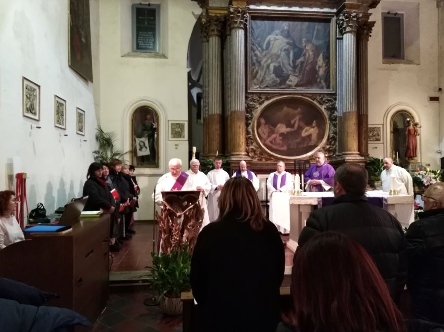 GROTTAMMARE – Venerdì 16 febbraio, presso la chiesa di sant’Agostino in Grottammare, il vicario generale della Diocesi di San Benedetto del Tronto – Ripatransone – Montalto Marche, don Patrizio Spina, ha presieduto una Celebrazione Eucaristica, alle ore 21:00, in occasione del X anniversario dell’istituzione dell’Adorazione Eucaristica Perpetua a Grottammare. La Santa Messa è stata concelebrata dal parroco di Montelparo, don Giorgio Carini e dal vicario foraneo della Vicaria Madonna di San Giovanni, e dal parroco delle Parrocchie di San Pio V e San Giovanni Battista, don Federico Pompei.