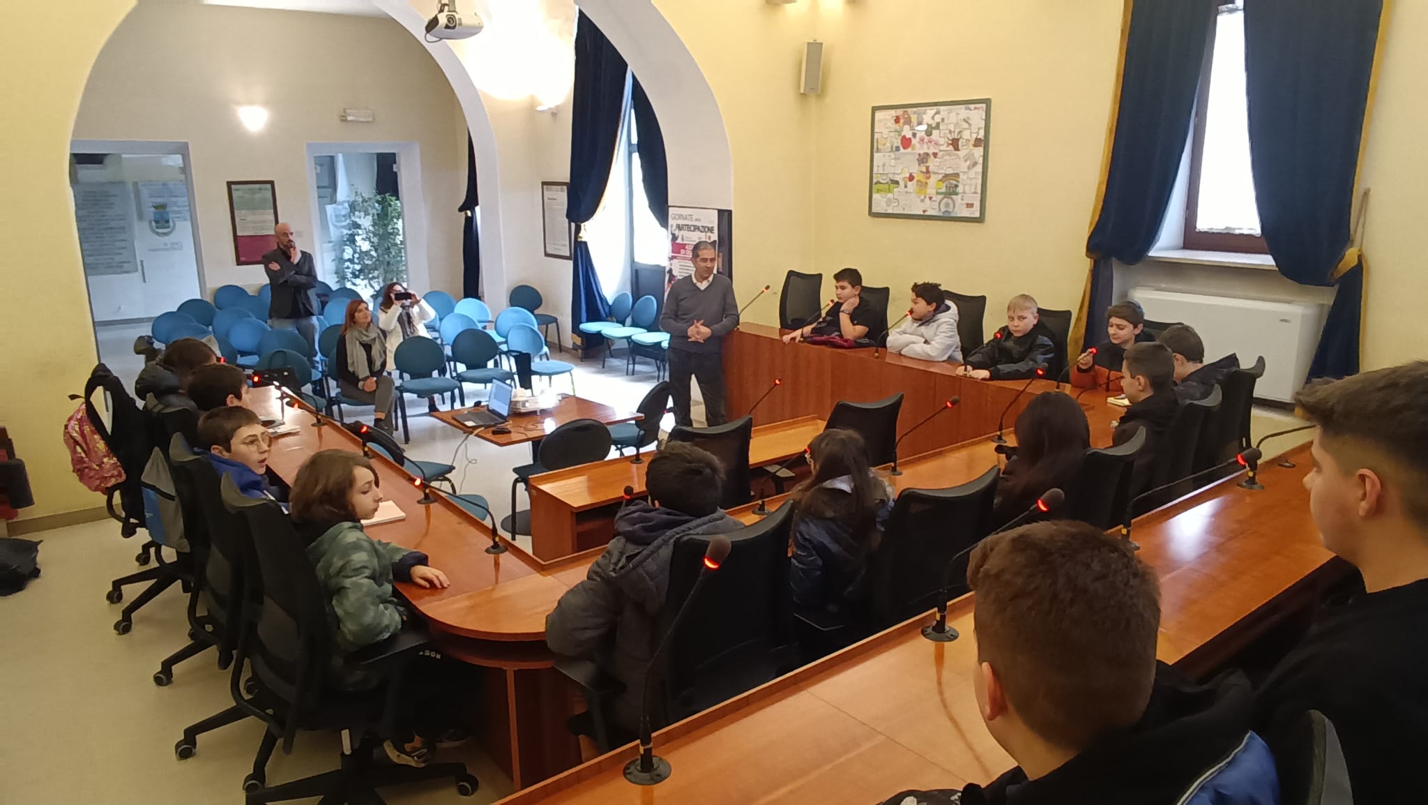 I ragazzi hanno mostrato entusiasmo e coinvolgimento sia nella visita alle sale istituzionali del palazzo comunale, sia nel momento di approfondimento avvenuto nella Sala del Consiglio, dove prima il sindaco Rocchi e poi l’addetto al servizio Partecipazione, Pier Paolo Fanesi, hanno tenuto interventi sul progetto Grottammare Partecipativa e presentato l’idea della creazione di un logo per accompagnarlo nel futuro.