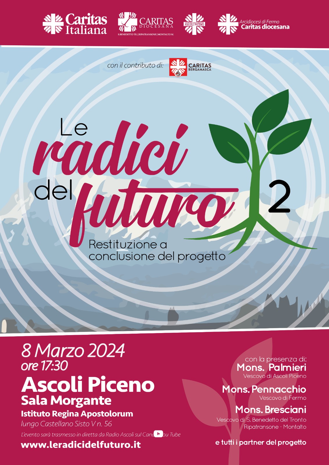 DIOCESI – Venerdì 8 marzo dalle ore 17.30 presso la Sala “Morgante”, dell’Istituto Regina Apostolorum ad Ascoli Piceno si terrà l’evento di conclusione della seconda edizione del progetto Inter-diocesano “Le radici del Futuro 2” sostenuto da Caritas italiana e Caritas Bergamasca a favore dei territori colpiti dal sisma del 2016.