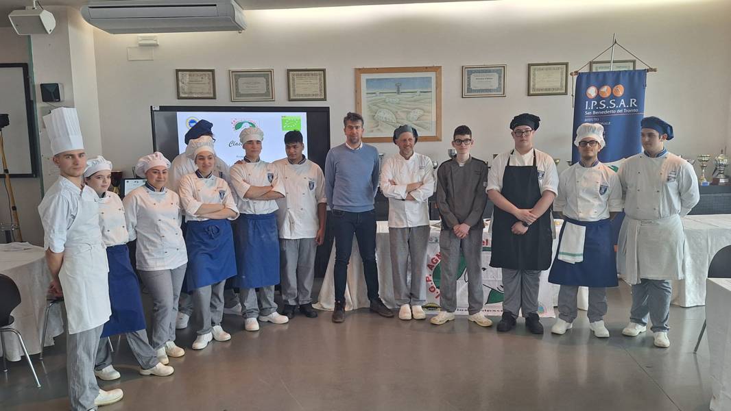 Dopo il momento divulgativo, le attività dell’incontro si sono spostate in cucina, dove gli alunni del quarto anno si sono cimentati nella realizzazione di ricette tradizionali ed innovative con le carni di agnello del Centro Italia IGP, che sono state presentate alla giuria ed agli ospiti direttamente dagli allievi con l’aiuto del professor Giovanni De Mola, referente dei laboratori. Dopo la degustazione, la giuria esterna, presieduta dalla giornalista Stefania Mezzina, ha dichiarato prima classificata la Classe 4°C Eno con la ricetta del rollè di agnello, farcito con fave e carciofi, con salsa di porri, finocchi e purè di patate arrosto.