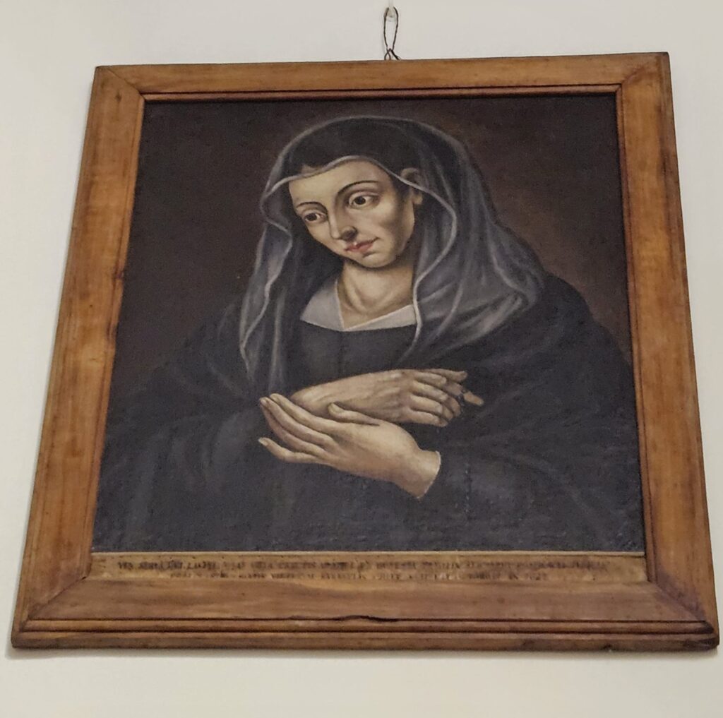 A questo punto ci permettiamo di consigliare non solo videocamere, ma anche un sistema di allarme “ad hoc”, magari chiudendo il quadro all’interno di una apposita teca. Si parla di questa straordinaria Piccola Donna nata nel 1588 è morta solo a 35 anni fautrice generosa dell’edificazione della chiesa Santa Maria dei Monti.