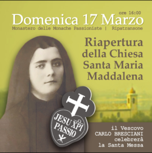 Dopo un anno di lavori, riaprirà al culto la chiesa del Monastero delle suore Passioniste, all’interno della quale si trova la tomba della venerabile suor Maria Addolorata Luciani.