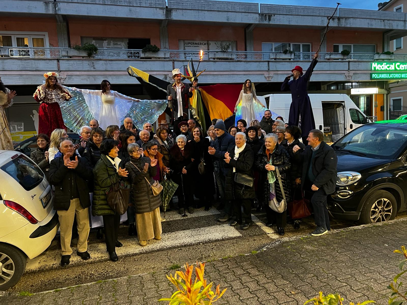Presso il ristorante Teta la festa è esplosa di gioia, il nipote Armando ha regalato alla nonna, insieme alla sua compagnia, uno spettacolo sui trampoli con tanto di sputafuoco.