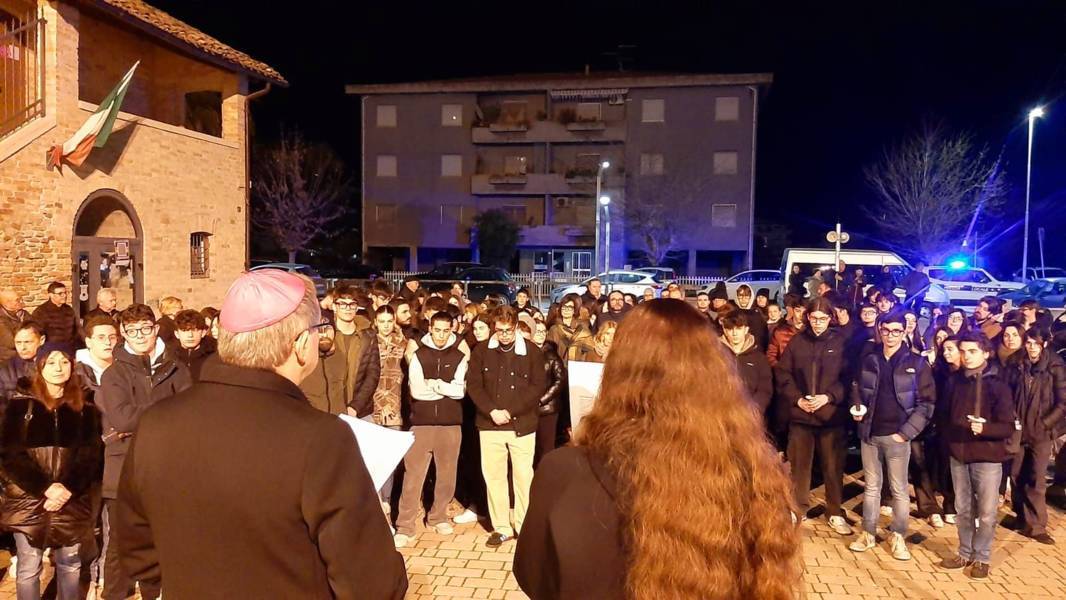 DIOCESI – Si è svolto Venerdì 15 Marzo, dalle ore 20:00 in poi, a Martinsicuro, un incontro dal titolo “Passi di speranza” organizzato in preparazione alla Pasqua dall’Equipe Diocesana di Pastorale Giovanile e rivolto a tutti i giovani della Diocesi di San Benedetto del Tronto – Ripatransone – Montalto, a partire dal 1° Superiore in poi. L’appuntamento, che ha avuto la forma di una Via Crucis, benché interpretata molto liberamente scegliendo soltanto alcune delle stazioni normalmente previste, ha registrato la presenza del vescovo diocesano, Mons. Carlo Bresciani, del coordinatore dell’Equipe don Matteo Calvaresi, del parroco della parrocchia Sacro Cuore che ospitava, don Anselmo Fulgenzi, e di molti altri sacerdoti della Diocesi che hanno accompagnato i ragazzi all’incontro.