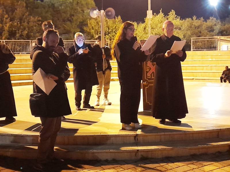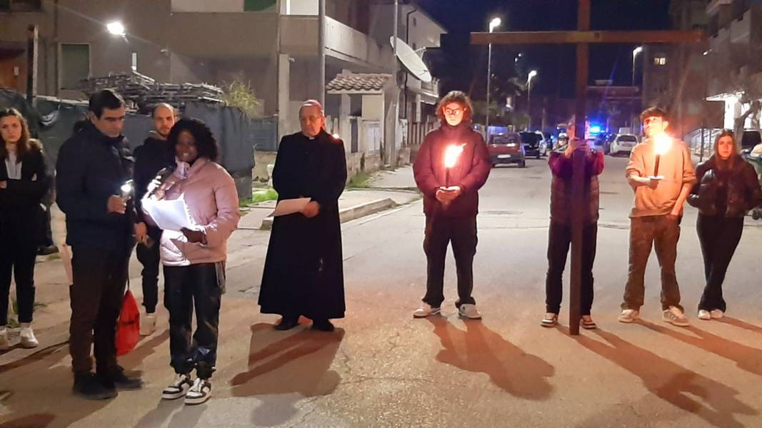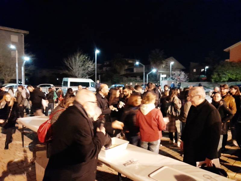 I giovani si sono dapprima ritrovati presso l’Anfiteatro di via Napoli in cui hanno consumato un pasto frugale a base di pane e olio per rimanere nel clima penitenziale del Venerdì di Quaresima.