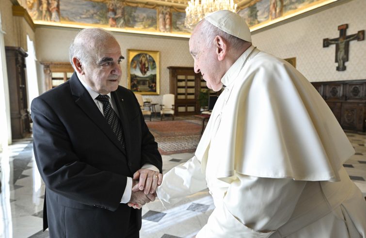 “Nel corso dei cordiali colloqui, in Segreteria di Stato – informa la Sala Stampa della Santa Sede – si è espresso apprezzamento per i buoni rapporti bilaterali esistenti. Ci si è poi soffermati su diverse tematiche di carattere internazionale, con particolare attenzione alla regione del Mediterraneo, ai conflitti in Israele e Palestina ed in Ucraina, nonché alle migrazioni”. Il Papa ha donato al presidente una scultura in bronzo dal titolo “Dialogo tra generazioni”, oltre ai consueti volumi dei documenti papali, al Messaggio per la Pace di quest’anno, al libro sulla Statio Orbis del 27 marzo 2020 a cura della Lev e al volume su l’Appartamento Pontificio delle Udienze, a cura della Prefettura della Casa Pontificia.