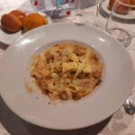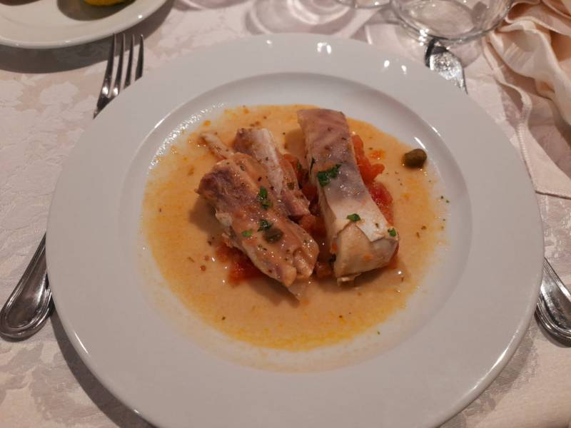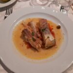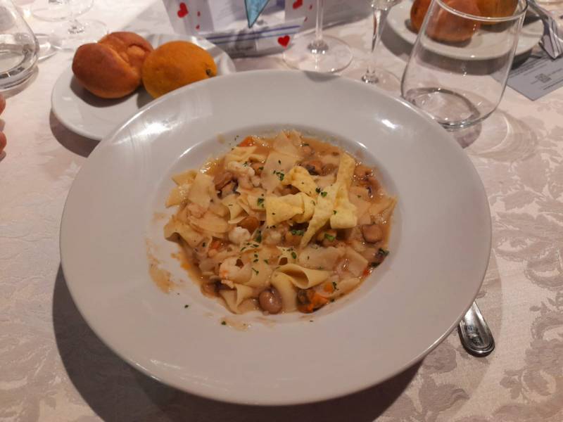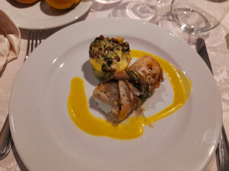 Ecco dunque nel dettaglio il menù della serata. Oltre all’aperitivo di benvenuto accompagnato da fritti di mare e verdure, gli ospiti hanno dato inizio alle danze con un assaggio di merluzzo nostrano gratinato con flan di bietola, patate e lenticchie. Come primo piatto, realizzato con ingredienti semplici ma di alta qualità, è stata servita una minestra di pasta e cicerchia con frutti di mare. Due i secondi che i commensali hanno potuto gustare: trancio di palombo alla pizzaiola leggera e frittura di paranza con verdure croccanti. La cena si è chiusa con una “sinfonia del gusto”, una selezione di squisiti dessert che ha deliziato i palati degli ospiti intervenuti.