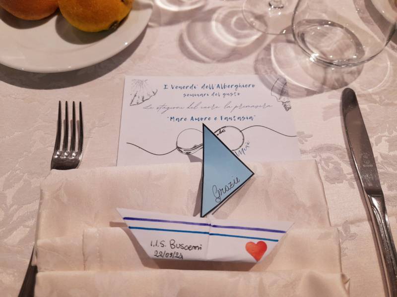 La cena, preparata dagli studenti del Buscemi e consumata nella splendida cornice della Sala Galiè con vista sul mare, è stata un viaggio attraverso i sensi che, grazie anche agli interventi sapienti ed arricchenti di docenti ed esperti, ha permesso di valorizzare i prodotti della filiera alimentare e della nutrizione. La serata è stata inoltre allietata dalla musica italiana d’autore e dalle belle voci della prof.ssa Silvia Ulpiani, docente di Inglese al Buscemi e di Mattia Cipriani, già studente dell’Istituto.