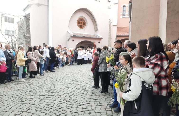 (Da Mukachevo) “Dio mio Dio mio perché mi hai abbandonato”. Il canto viene intonato in modo solenne da una donna e i fedeli rispondono. Hanno in mano i “salici” che prima sul sagrato della chiesa sono stati benedetti. Tutti in ginocchio. Seguono. Pregano. Cantano. È Domenica delle Palme. La cattedrale cattolica latina di San Martino a Mukachevo è gremita di gente. L’Ucraina è ovunque un Paese in guerra. La capitale ucraina Kyiv e la regione occidentale di Lviv sono state attaccate dall’aviazione russa nelle prime ore di questa domenica che per i cattolici latini apre alla Settimana Santa. Non c’è pace: “Esplosioni nella capitale. La difesa aerea è in funzione. Non lasciate i rifugi”, ha scritto su Telegram il sindaco di Kyiv Vitali Klitschko.
