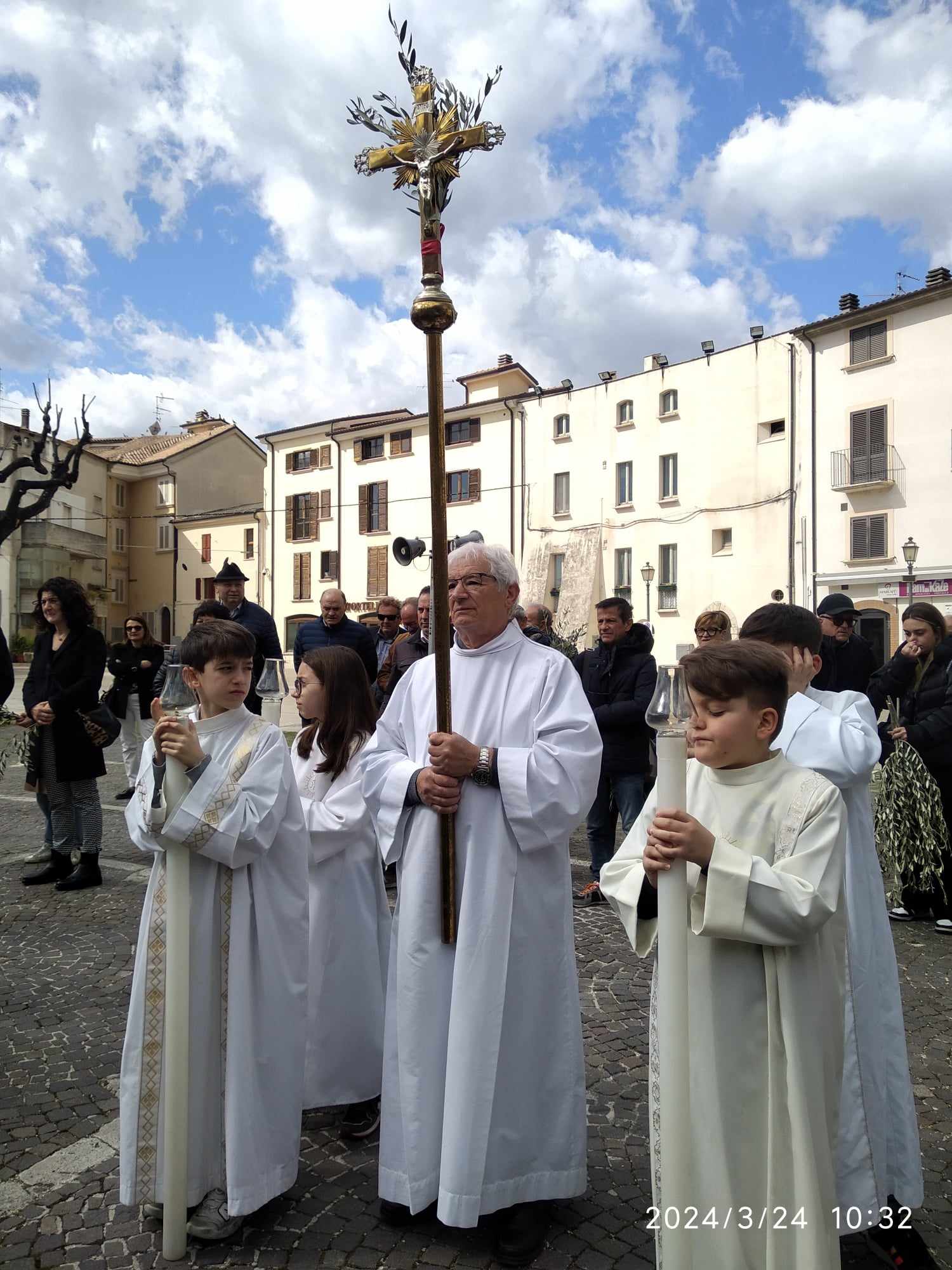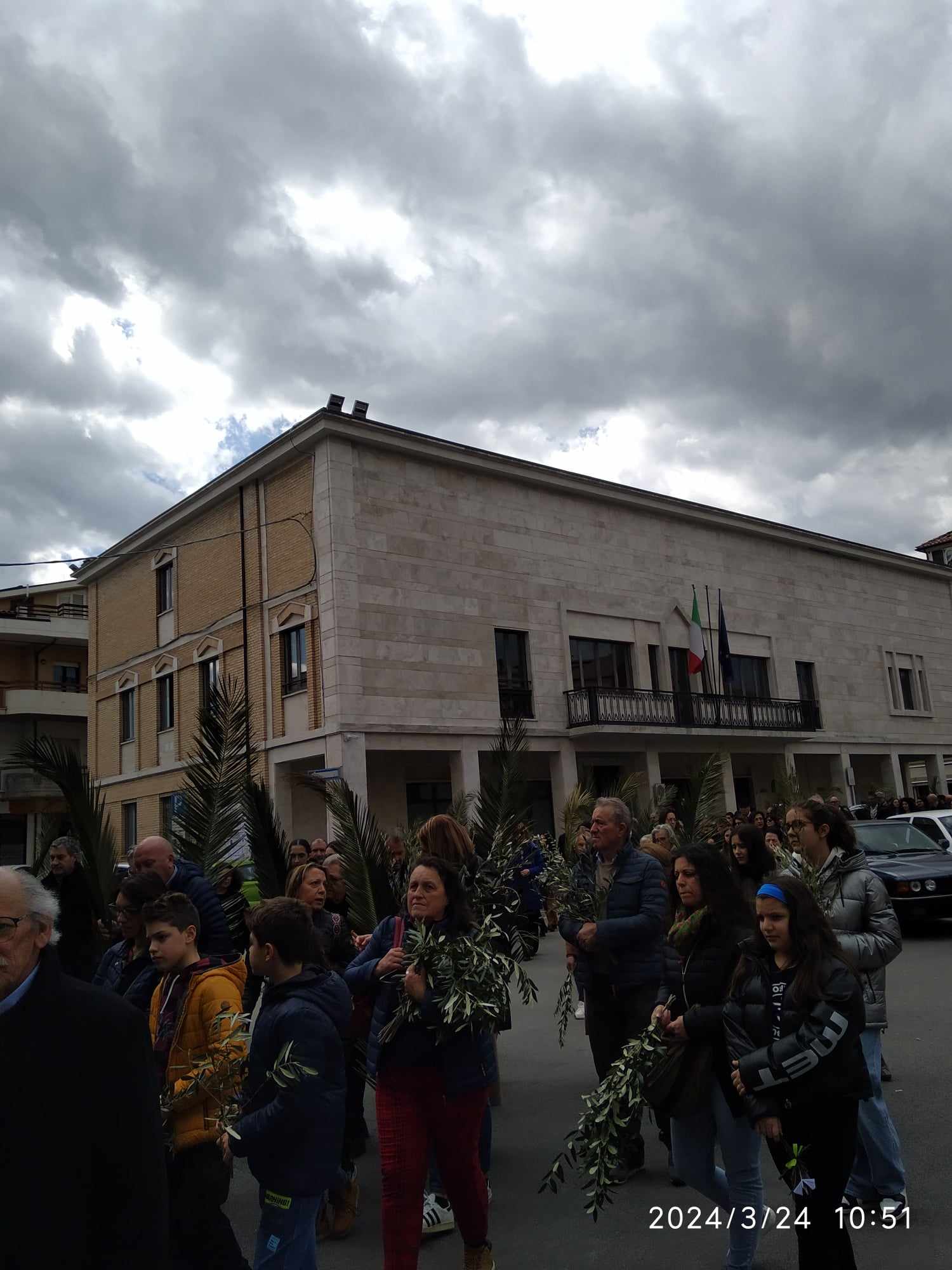 Le funzioni si sono aperte con la celebrazione della Santa Messa di Domenica delle Palme, iniziata con la benedizione delle Palme ed una piccola processione cittadina da Piazza Europa, in cui i bimbi delle classi della Santa Comunione hanno accompagnato la comunità fino all’ingresso della Chiesa del Sacro Cuore sita in Piazza Umberto I.