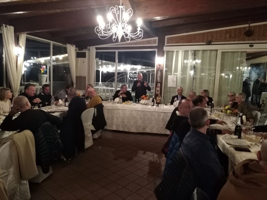 Durante la cena il presidente dell’Ente Associazione Palio del Duca aps, cav. Nello Gaetani ha comunicato una importante novità e cioè che l’Ente Palio è stato ammesso al beneficio del “5X1000” perché in possesso di tutti i requisiti necessari. Lo stesso cav. Gaetani ha comunicato, inoltre il nome del ragazzo che ha disegnato il bozzetto vincitore, Michele Crescentini, il disegno, lo stesso Michele, lo riprodurrà sulla tela e diventerà il Drappo da contendersi nel Palio dei Bambini. Non meno importante, il presidente ha ricordato che è partito il corso dei tamburini in preparazione sia per il Palio dei Bambini che per il Palio di agosto. Alla cena erano presenti, tra i numerosi partecipanti, anche i componenti della Commissione artistica e della Commissione storico scientifica: Saverio Magno, Maurizio Medori, Alessandro Sciarra e Patrizia Neroni; l’ing. Medori ha raccontato brevemente che la cacciagione era, nel Medioevo, il pasto dei ricchi, dei re, degli imperatori, perché dopo l’anno Mille i nobili non si limitarono a richiedere una tassazione sul cacciato, ma proibirono alle classi sociali che non possedevano un territorio proprio, di andare a caccia. Per i nobili divenne un vero e proprio sport e un modo di dimostrare la loro forza e il loro valore in battaglia.