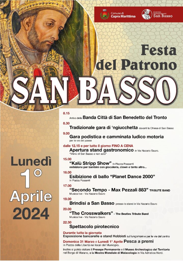 CUPRA MARITTIMA – Lunedì 1 aprile 2024, lunedì dell’Angelo, a Cupra Marittima si festeggerà il Patrono, san Basso.