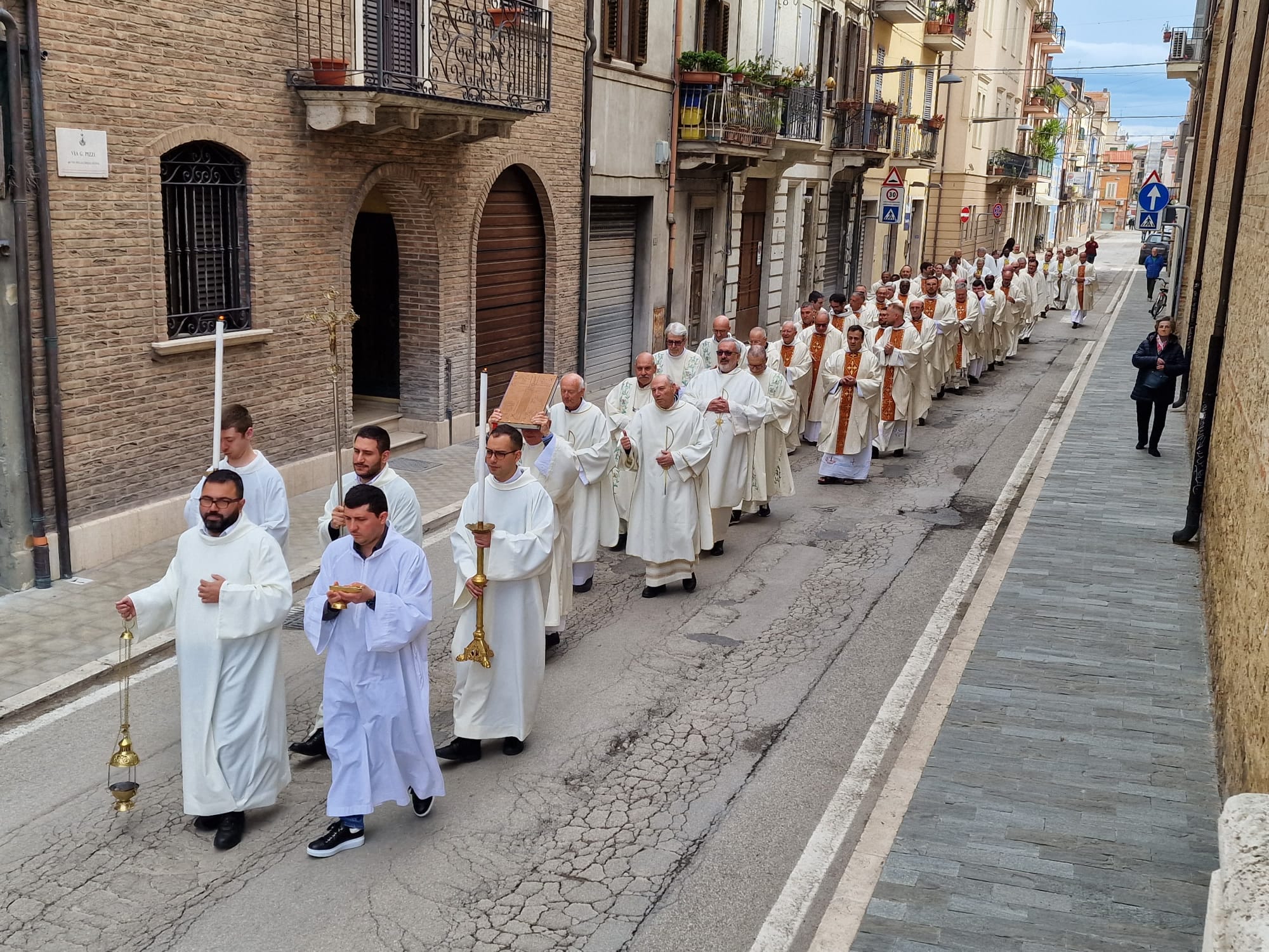 DIOCESI – Si è svolta ieri mattina alle ore 10:30, presso la Cattedrale di Santa Maria della Marina di San Benedetto del Tronto, la Messa Crismale. Presieduta dal Vescovo Carlo Bresciani e concelebrata dai sacerdoti della Diocesi, la solenne Messa è stata motivo di grande gioia per tutti i presenti.