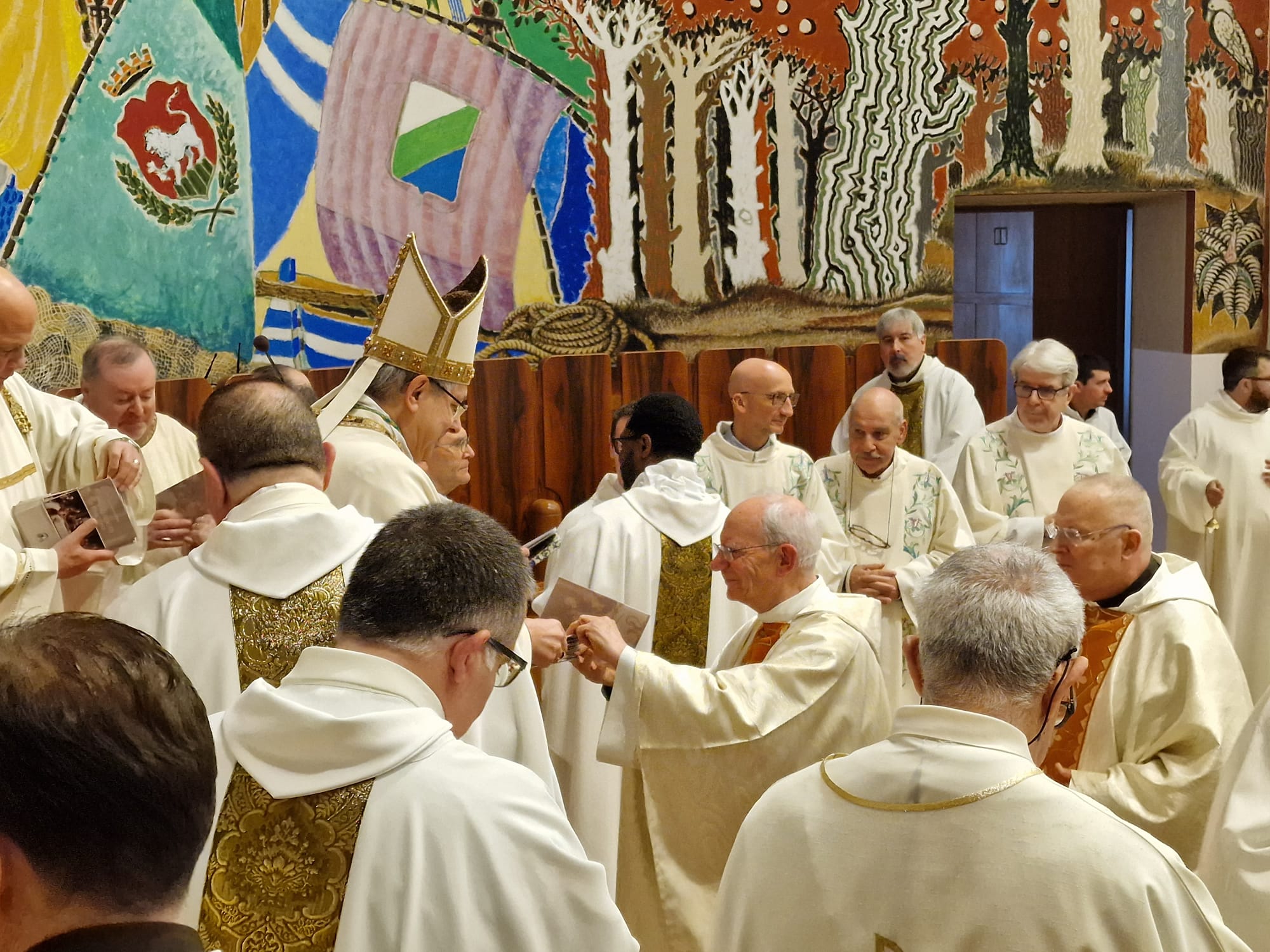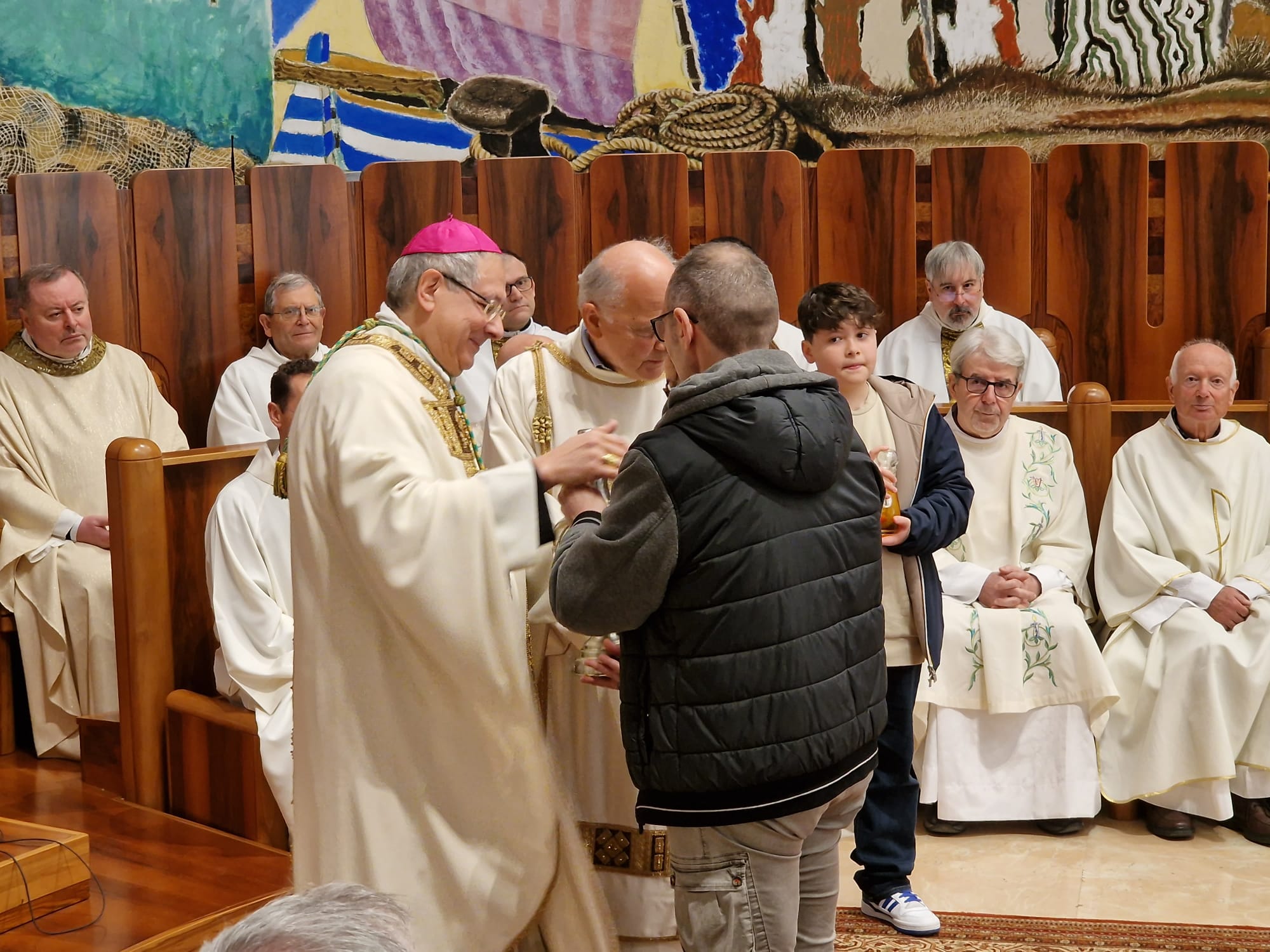 Al termine della Messa, il Vescovo Bresciani ha voluto omaggiare i presbiteri, che hanno festeggiato un particolare anniversario, con un piccolo dono, segno della gratitudine della Chiesa.
