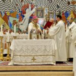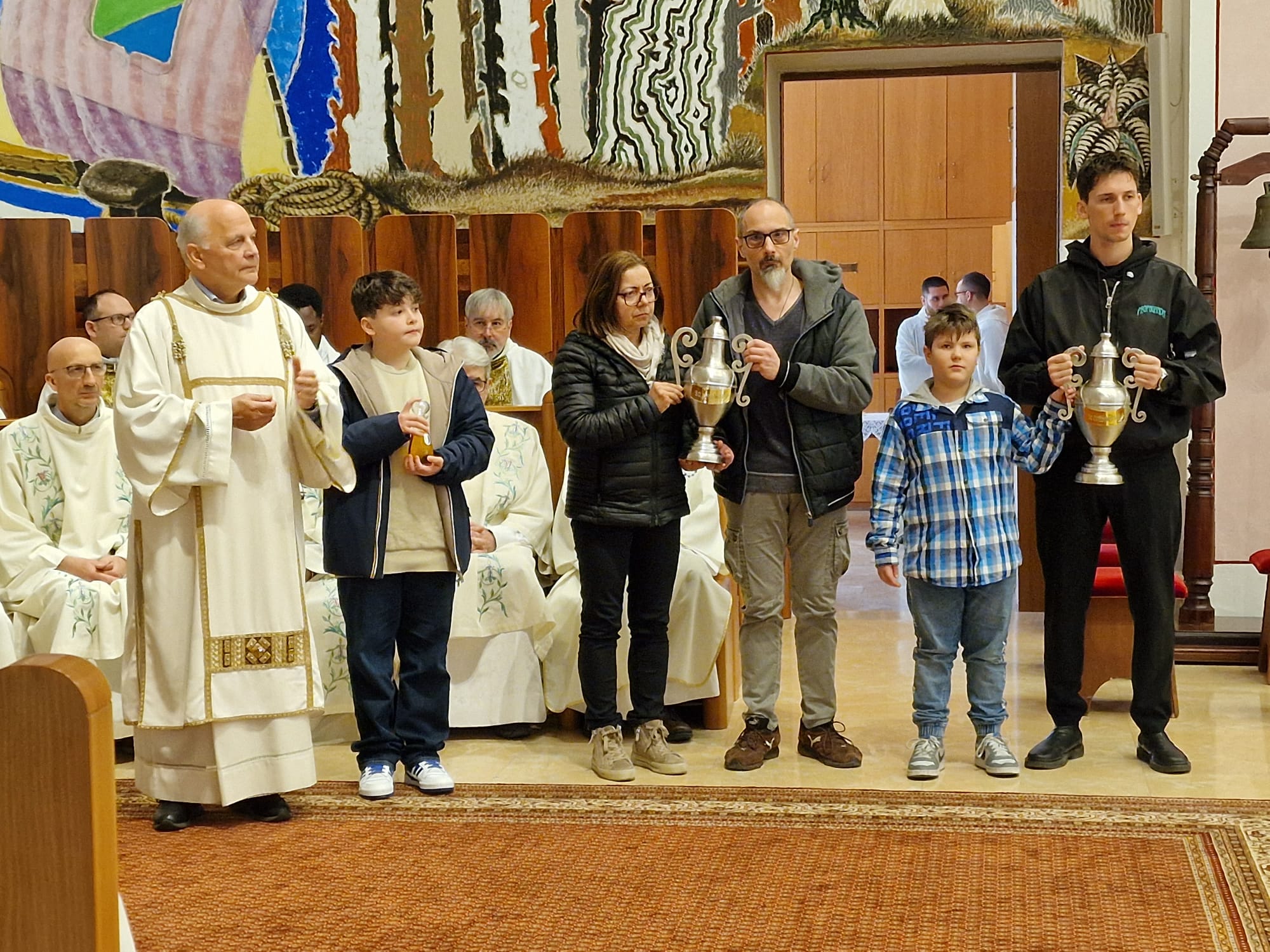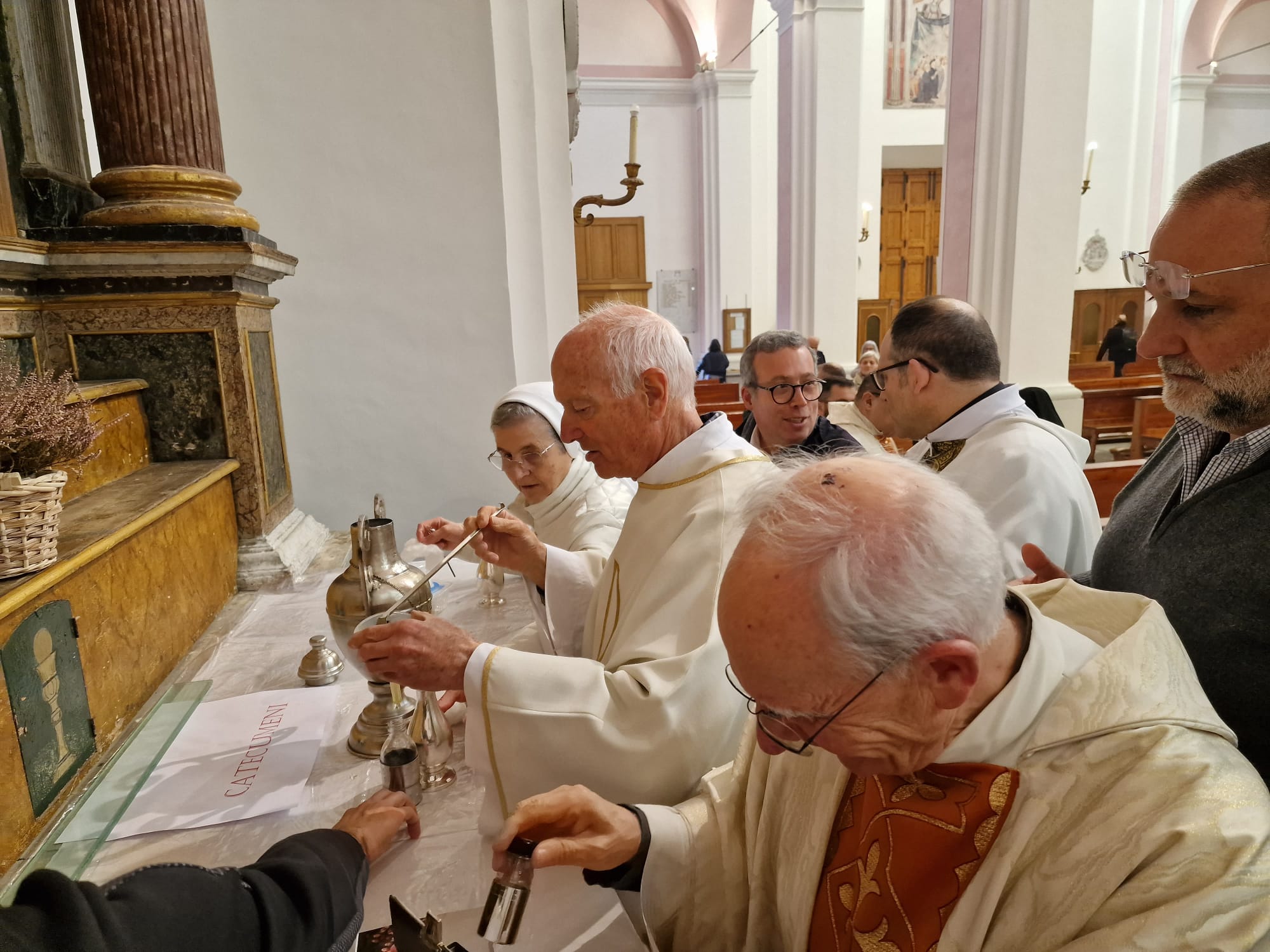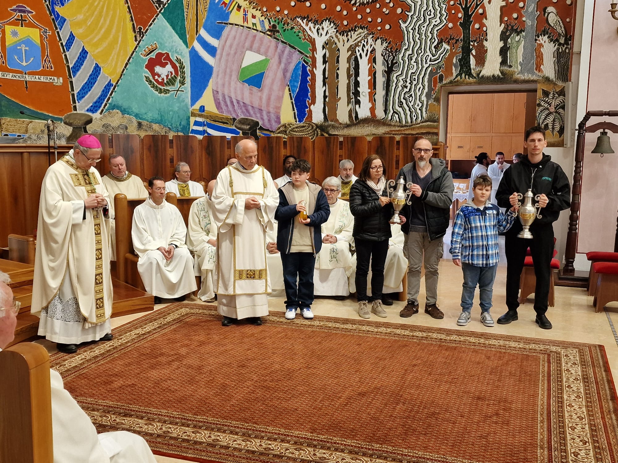 Dopo la liturgia della Parola sono state rinnovate le promesse sacerdotali e la benedizione dei tre olii santi (il crisma, l’olio degli infermi e l’olio dei catecumeni), che saranno accolti nelle Parrocchie della Diocesi e utilizzati nei vari Sacramenti.