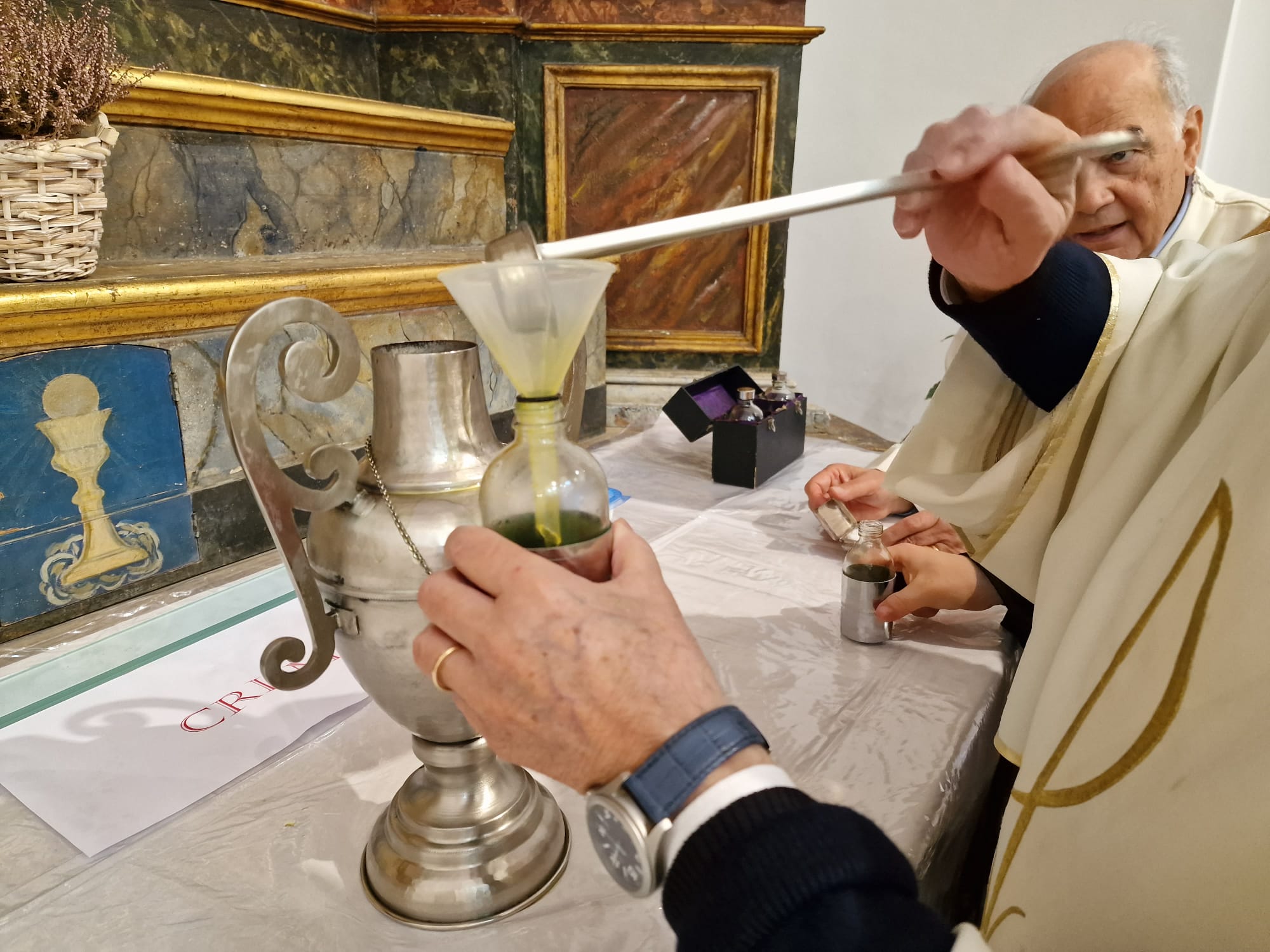 In particolare, quest’anno, mescolato olio degli infermi c’è olio che proviene dagli ulivi piantati nel luogo della strage di Capaci, donato dalla Polizia di Stato in memoria dei servitori dello Stato là barbaramente uccisi dalla mafia. Vuole essere un segno che dalla morte può rinascere la vita.