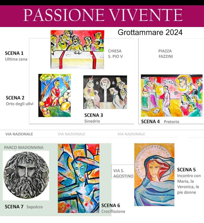 GROTTAMMARE – La “Prima ” della Passione Vivente della cittadina rivierasca si terrà a partire dalle 21,15 nella Chiesa di San Pio V con la rappresentazione dell’Ultima Cena. A seguire, la seconda e terza scena si terranno nel Sagrato antistante, Orto degli ulivi e Processo religioso nel Sinedrio, poi ci si sposterà per la quarta scena al centro, in piazza Fazzini per il Processo civile davanti a Pilato ed infine ci si recherà in corteo processionale verso “La Via del Calvario” , nella storica via di Sant’Agostino per la Quinta e sesta scena, Incontro con Maria e la Veronica, dopodichè ci si recherà nel Parco della Madonnina per la Crocifissione , settima scena ed il Sepolcro. Mons. Federico Pompei, parroco di San Pio V e San Giovanni Battista, invita tutti a partecipare con queste parole :