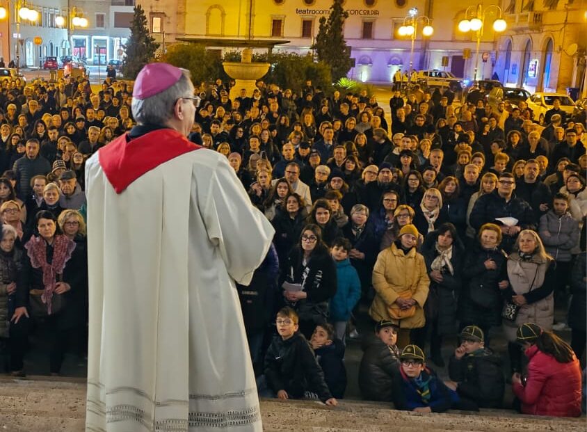 Don Gianni Croci: “È risuonata tra le case l’orazione per i popoli che vivono terribili guerre fratricide, per le famiglie in cerca di unità, per gli scartati che chiedono speranza. Si è visto una Chiesa, Popolo di Dio, radunata attorno al suo pastore. Davanti alla Cattedrale, ad una piazza gremita, il vescovo Carlo a tutti ha ricordato che, nel buio profondo delle nostre notti e delle notti del mondo, si può, affidandosi a Cristo, accendere una piccola luce nelle menti e nel cuore dei tanti crocifissi di oggi. Nel silenzio l’assemblea si è sciolta nell’attesa di celebrare la Risurrezione di Cristo”.