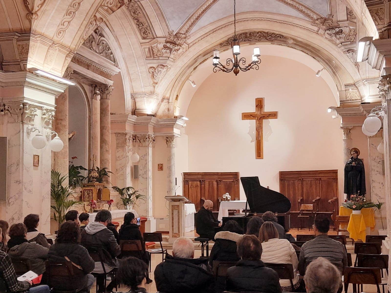 Il giovane Ottavini, laureato summa cum laude in Pianoforte presso il Conservatorio Statale Gaetano Braga di Teramo e specializzando in Musica da Camera nel medesimo Istituto, ha regalato ai presenti un viaggio ininterrotto, durato poco più di un’ora, tra misticismo e realismo, tra la glorificazione del Divino e della sua potenza, da un lato, e il racconto dell’inquietudine e della sofferenza dell’animo umano, dall’altro. Un viaggio nel tempo e nello spazio, che ben ha richiamato la doppia natura di Cristo, divina ed umana, proprio nel giorno in cui la Chiesa ha ricordato la sua Passione e morte.
