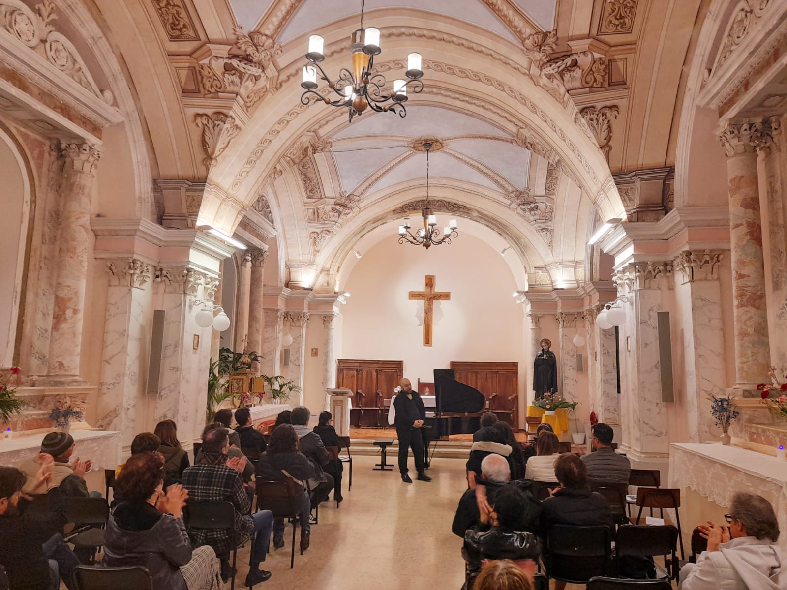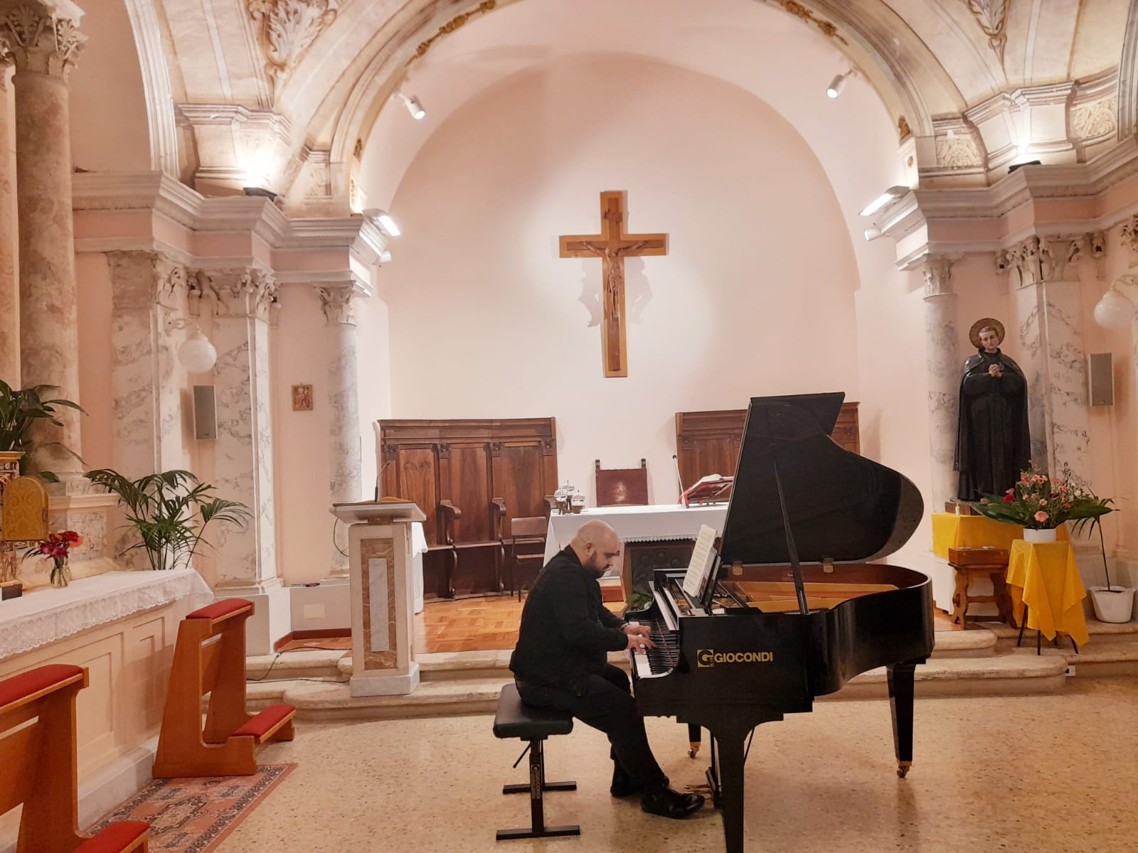 COLONNELLA – Un cascata di note dirompenti che hanno infranto il silenzio ovattato ed avvolgente dell’edificio sacro nel giorno del Venerdì Santo: si può riassumere così il concerto per pianoforte che si è tenuto lo scorso 29 Marzo, alle ore 18:00, a Colonnella, presso la cripta della chiesa San Cipriano. L’evento, organizzato dall’Associazione “Il nido del drago”, ha ospitato il giovane e talentuoso Maestro Andrea Maria Ottavini, pianista e compositore, autore anche di colonne sonore per produzioni cinematografiche, membro del trio di pianisti “Les Trois Amis” con cui ha partecipato alla trasmissione UnoMattina su RaiUno e ha rappresentato il Bel Paese al Padiglione Italia all’Expo di Milano nel 2015.