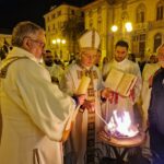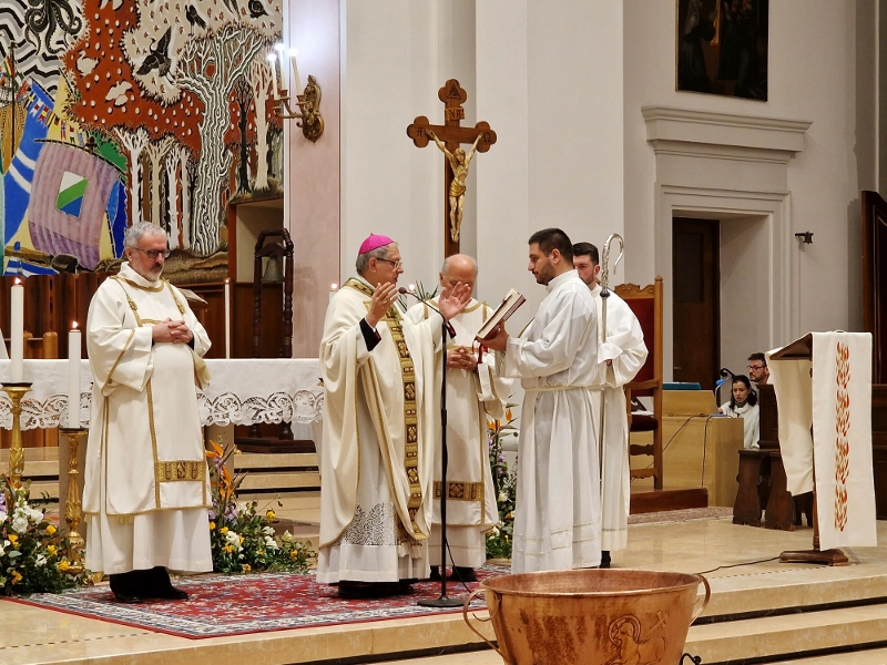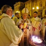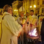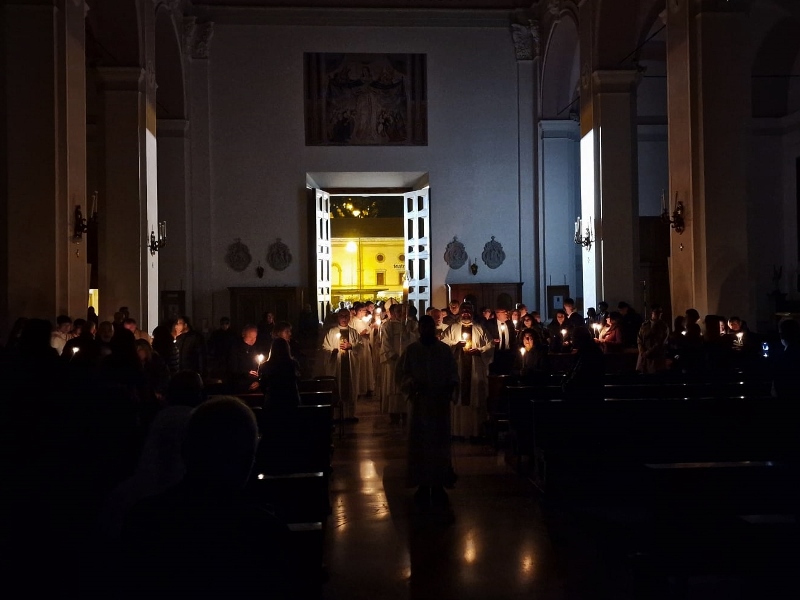Vescovo Bresciani: “Cosa ci ha detto questa veglia? Una cosa, tra tante altre, certamente molto importante: Dio non ha mai abbandonato il suo popolo. La storia della salvezza è stata un continuo abbandonare Dio da parte del popolo eletto, ma Dio non ha mai abbandonato il suo popolo, perché è un Dio fedele. Questo è il fondamento della nostra speranza in lui. Questa fedeltà ha avuto il suo vertice in Gesù: Dio lo ha inviato nel mondo, lo ha accompagnato come un padre accompagna il figlio, e alla fine non lo ha abbandonato nella morte, ma gli ha ridato la vita. Noi, questa notte, celebriamo nella gioia la fedeltà di Dio manifestatasi in Gesù. L’abbiamo fatto suonando le campane, cantando il Gloria a Dio e l’alleluia pasquale, che significa: lode, gloria a Dio che ha ridato la vita a colui che era morto ed ora è vivo.