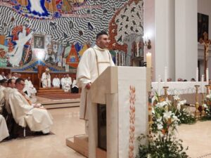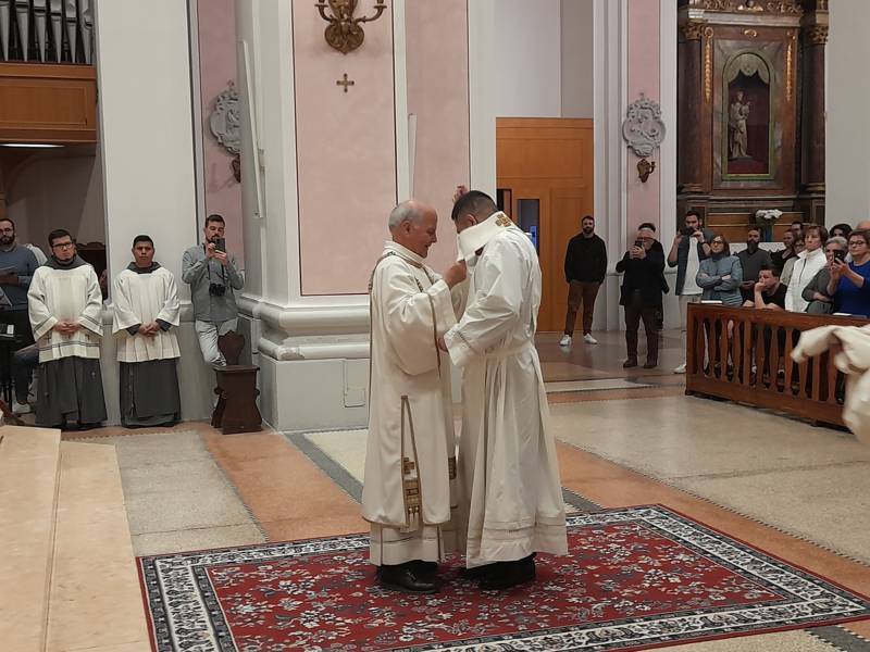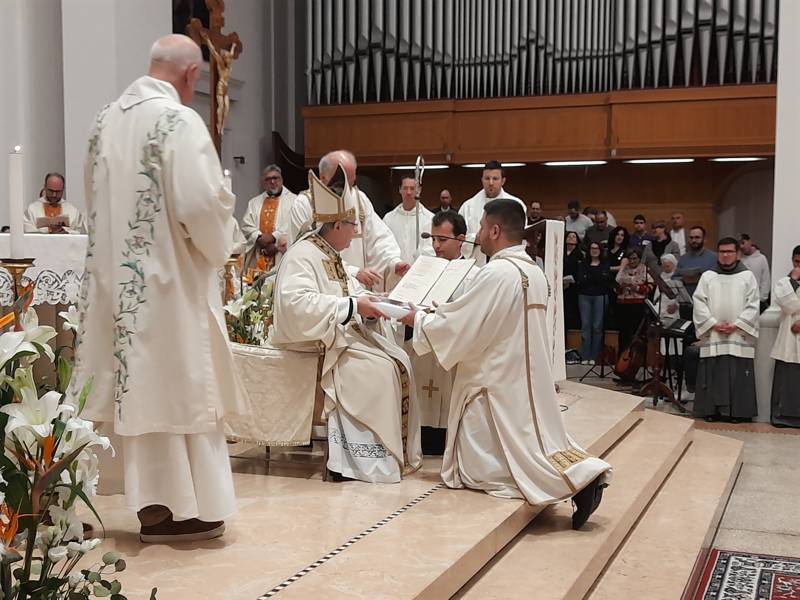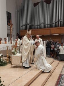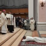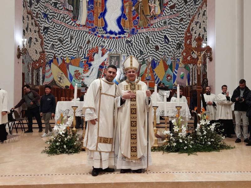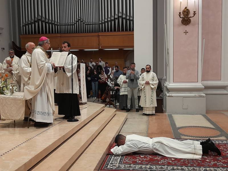 Dopo aver preso gli impegni solenni, il seminarista, come previsto dal rito, si è sdraiato a terra e, insieme all’assemblea riunita, ha pregato le Litanie dei Santi, invocandoli per concedere a lui la benedizione. A seguire D’Aprile si è inginocchiato davanti al vescovo Bresciani, il quale ha imposto le mani sul capo del giovane e ha supplicato il Signore ad effondere in lui lo Spirito Santo, affinché lo fortifichi con i sette doni della Sua Grazia, così da compiere fedelmente l’opera del Ministero.