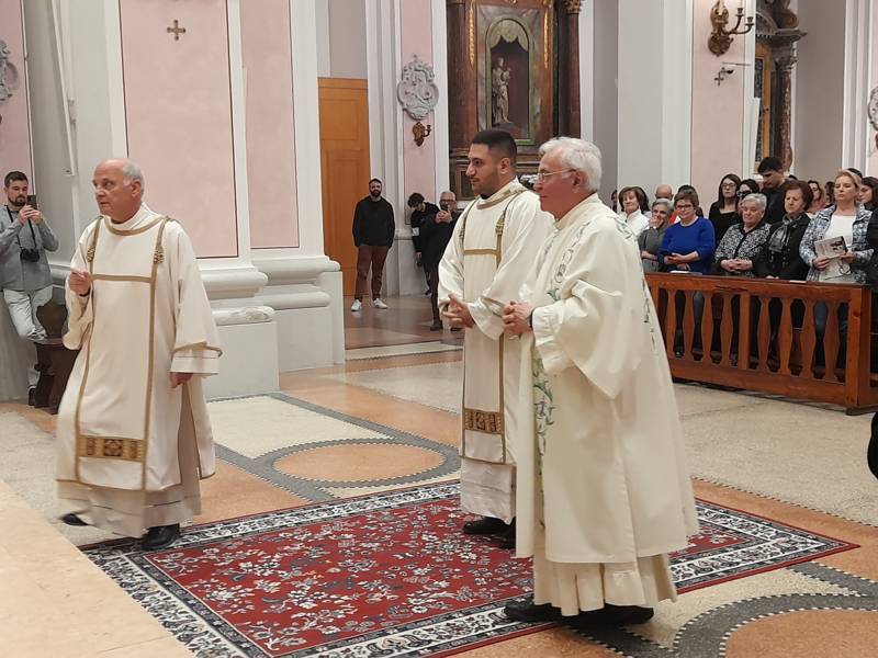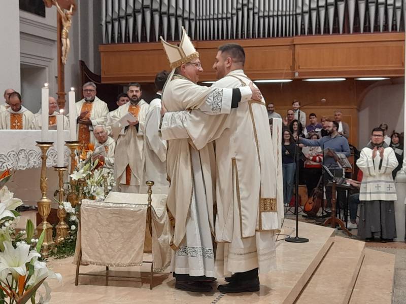 Carissimo Andrea, il Diaconato che questa sera in nome della Chiesa ti conferisco, per te è un passaggio verso il secondo grado dell’Ordine, cioè verso il Presbiterato. Il Presbiterato però non lo eliminerà, lo ingloberà e il Diaconato resterà, quindi, parte indispensabile del grado superiore dell’Ordine. Non dimenticarlo mai, se vorrai essere vero amico di Colui che è venuto per servire e non per essere servito”.