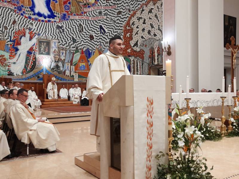 “Il Vangelo di oggi – ha concluso Mons. Bresciani – ci presenta la figura dell’apostolo Tommaso, in modo particolare con la sua difficoltà a credere nella resurrezione di Gesù. Non era presente, quando Gesù è apparso agli altri apostoli riuniti. Essi gli avevano detto di averlo visto risorto, ma lui non ha creduto a quanto gli hanno detto. Tommaso in qualche modo ci rappresenta tutti, nel senso che la fede non è qualcosa di scontato e neppure è accolta una volta per sempre. È dono da accogliere sempre di nuovo, restando aperti alle sorprese di Dio, e toccando con mano ogni giorno il corpo piagato di Cristo. Anche tu non dovrai mai dare per scontata la fede che oggi ti porta ad accettare il Ministero. Essa è un grande dono di Dio da custodire e alimentare nel rapporto quotidiano con Lui e con la sua Parola, vale a dire con Gesù, il Verbo (la Parola) che si è fatto carne, non ha disdegnato di abbassarsi fino alla nostra povertà.
