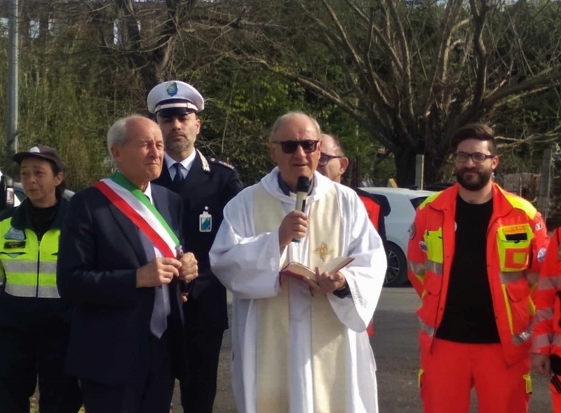 La cerimonia ha avuto inizio alle ore 16:30, con la benedizione, da parte del parroco don Luigino Scarponi, della nuova targhetta e di tutta la popolazione occorsa, il quale ha ammonito: “Siccome la strada l’abbiamo intitolata alle vittime, pensiamo oggi a tutte le oltre 300 vittime del sisma del 2009, perché dobbiamo essere tutti presenti e pronti, alla nostra ora, che non conosciamo”.
