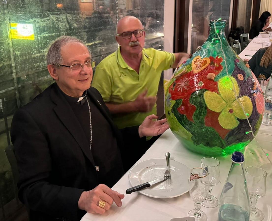 DIOCESI – Sabato 13 Aprile 2024 è stata donata al vescovo della Diocesi di San Benedetto del Tronto Ripatransone Montalto, Mons. Carlo Bresciani, un’opera realizzata da alcuni ospiti della struttura “Il Filo di Arianna” di Fermo durante il Laboratorio Creativo tenuto dal Maestro Patrizio Moscardelli. La consegna è avvenuta a Grottammare, durante un momento di convivialità organizzato dalla redazione del giornale diocesano L’Ancora con il vescovo ed alcuni collaboratori, tra i quali anche l’artista.