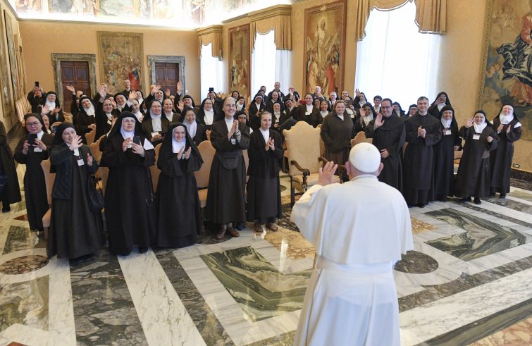 Lo ha detto il Papa, nel discorso – in spagnolo – rivolto alle Carmelitane Scalze, ricevute ieri in udienza. “Il vostro – ha detto loro – è un cammino in cui ci si lascia influenzare dall’amore di Cristo fino ad unirsi a lui, perché questo amore pervada tutta l’esistenza e si esprima in ogni gesto e in ogni azione quotidiana. Il dinamismo della contemplazione è sempre un dinamismo di amore, è sempre una scala che ci eleva a Dio non per staccarci dalla terra, ma per farcela abitare in profondità, come testimoni dell’amore ricevuto”.