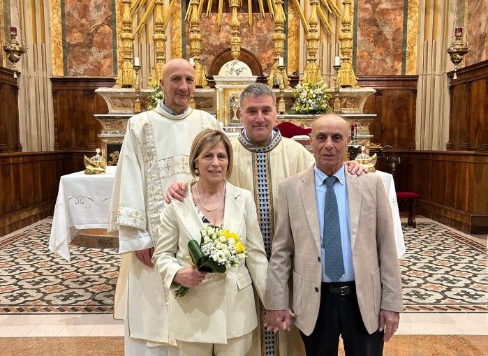 ACQUAVIVA PICENA -Tanti auguri di buon cinquantesimo anniversario di matrimonio a Rosalia De Luca e Cristoforo Polito. Rosalia e Cristoforo si sono sposati il 18 aprile del 1974 nella chiesa San Cristoforo, oggi Basilica, di Canneto di Lipari nelle Isole Eolie. Dopo cinquanta anni hanno voluto riconfermare il loro “sì” davanti al Signore, al quale rivolgono sempre il loro ringraziamento, nella chiesa parrocchiale San Niccolò di Acquaviva Picena, insieme alla loro famiglia e agli amici.