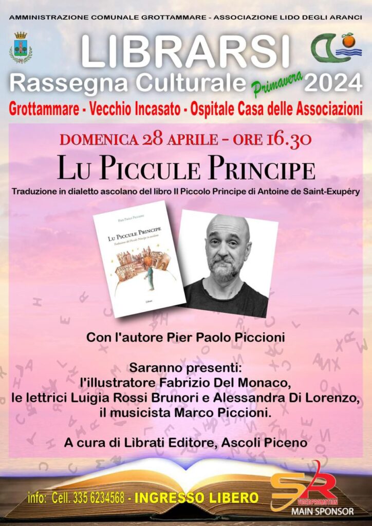 E nella splendida cornice del Vecchio Incasato di Grottammare, presso l’Ospitale Casa delle Associazioni alle ore 16.30, Petò ci regalerà “Lu piccule Principe”, insieme alle letture di Luigia Rossi Brunori e Alessandra Di Lorenzo, all’intrattenimento di Marco Piccioni e ai disegni di Fabrizio Del Monaco per un vero “spettacolo” di lettura e sentimento… perché in dialetto ascolano, come ce la declamerà l’autore la più famosa citazione del racconto < “…” Ecco il mio segreto. E’ molto semplice: non si vede bene che con il cuore. L’essenziale è invisibile agli occhi. “…” >