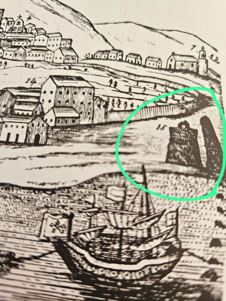 Nella foto si piò vedere una mappa ottocentesca dove si vedono, cerchiati verde, i due enormi scogli: Sasso di San Nicola a sinistra, con  addirittura visibili ( sic!) ,, i ruderi della chiesolina di San Niccolo a Mare e a destra, Sasso Piccuto. Entrambi in questa epoca appaiono già interrati e sulla battigia, per il progressivo ritirarsi delle acque marine.