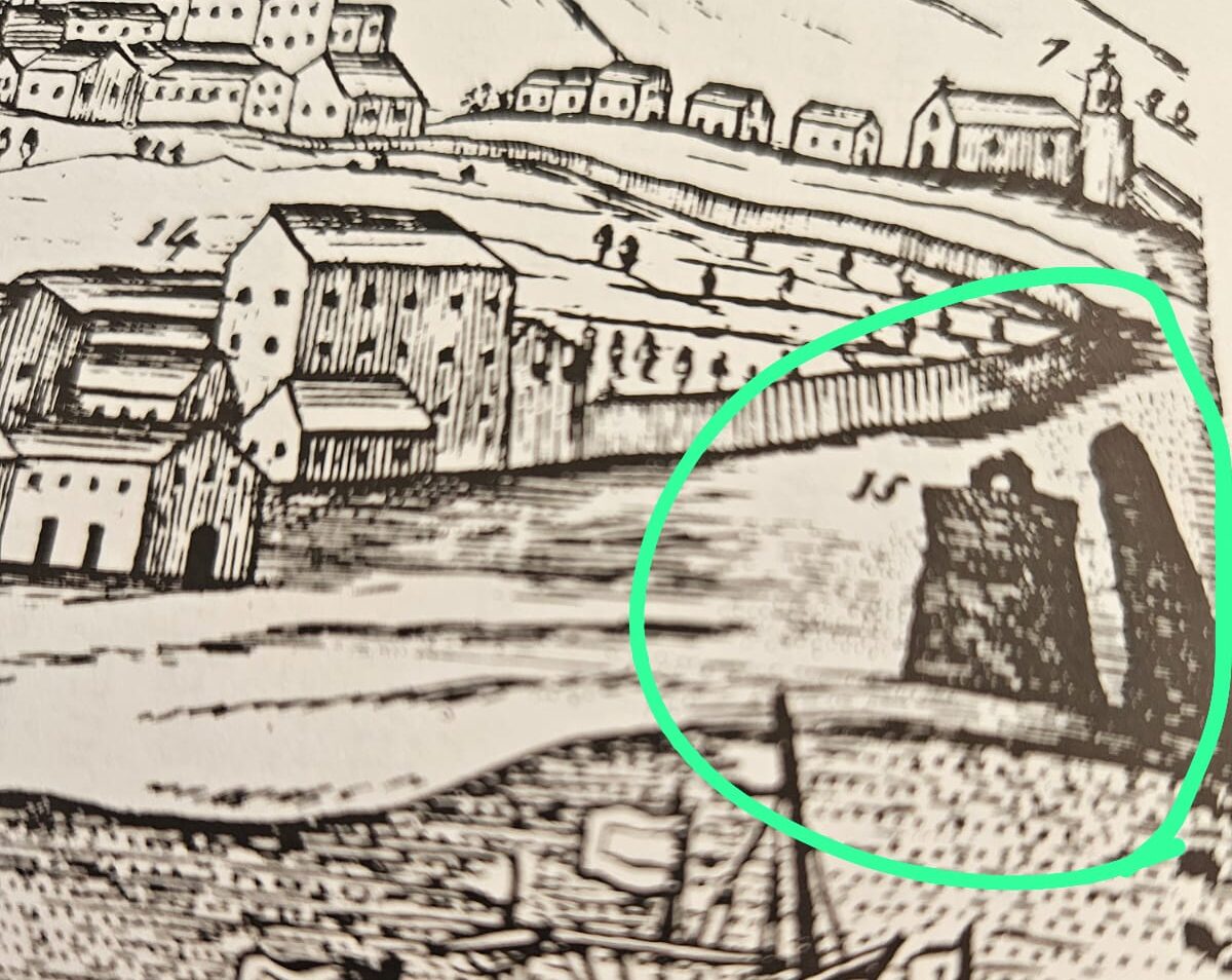 Nella foto si piò vedere una mappa ottocentesca dove si vedono, cerchiati verde, i due enormi scogli: Sasso di San Nicola a sinistra, con addirittura visibili ( sic!) ,, i ruderi della chiesolina di San Niccolo a Mare e a destra, Sasso Piccuto. Entrambi in questa epoca appaiono già interrati e sulla battigia, per il progressivo ritirarsi delle acque marine.